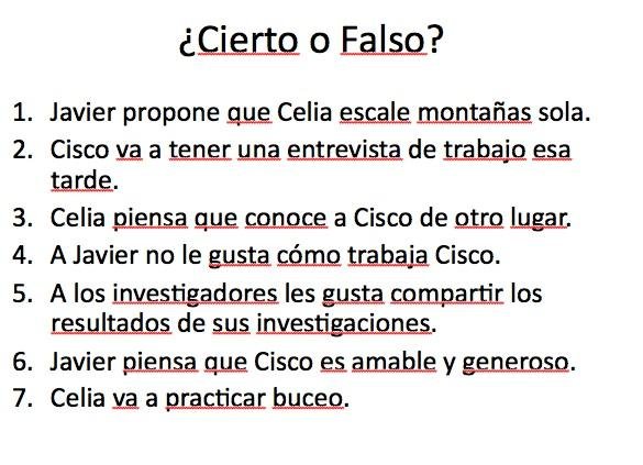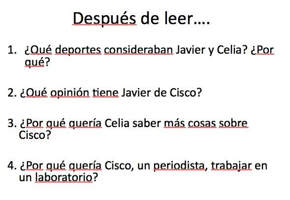1. Lean la conversación entre Celia y Javier (p.108 + p.109 hasta "hagámoslo tú y you juntos")