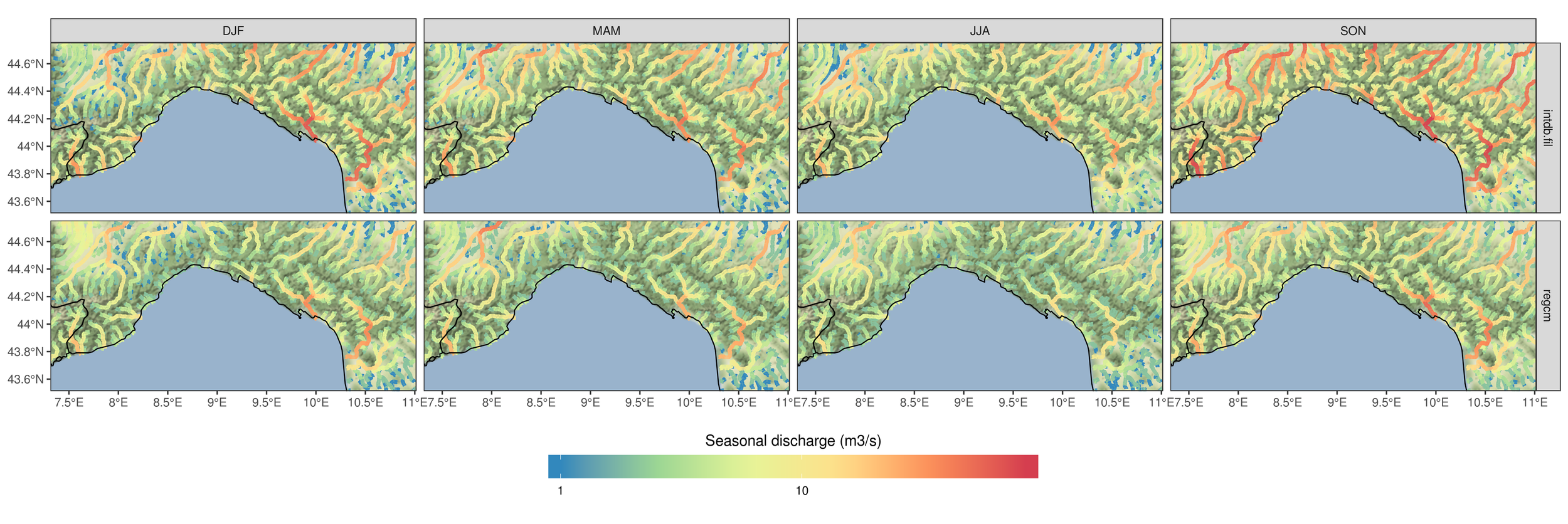 How does the model perform if driven with RegCM, compared with if driven with observations? (Liguria example)