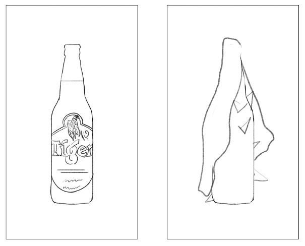 Silhouette of tiger beer bottle with captions and emojis related to the beer flavour placed around it