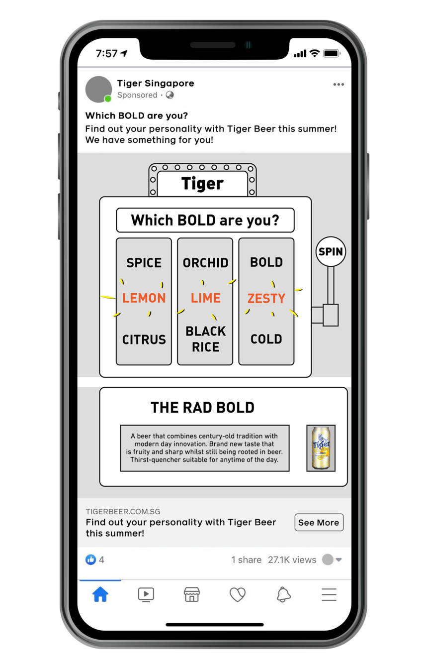 By making people associate themselves with a specific drink through the personality test, perhaps people will be more encouraged to give the different tiger flavours a try, driven by the need to know what the drink that represents them would taste like.