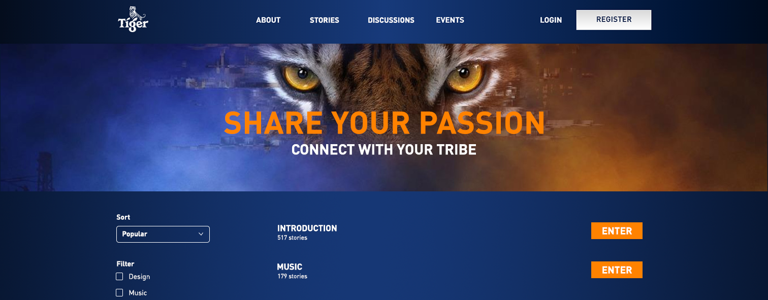Tiger's brand commitment is to champion raw talents who approach their craft in an unconventional way; to support creatives who dare to pursue their passion.