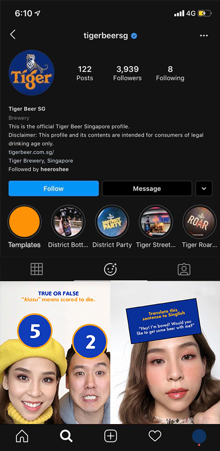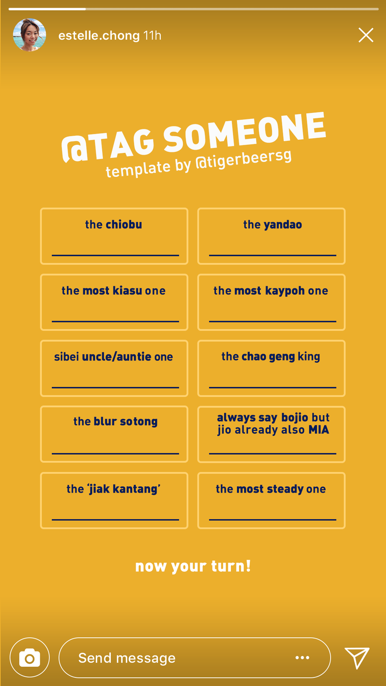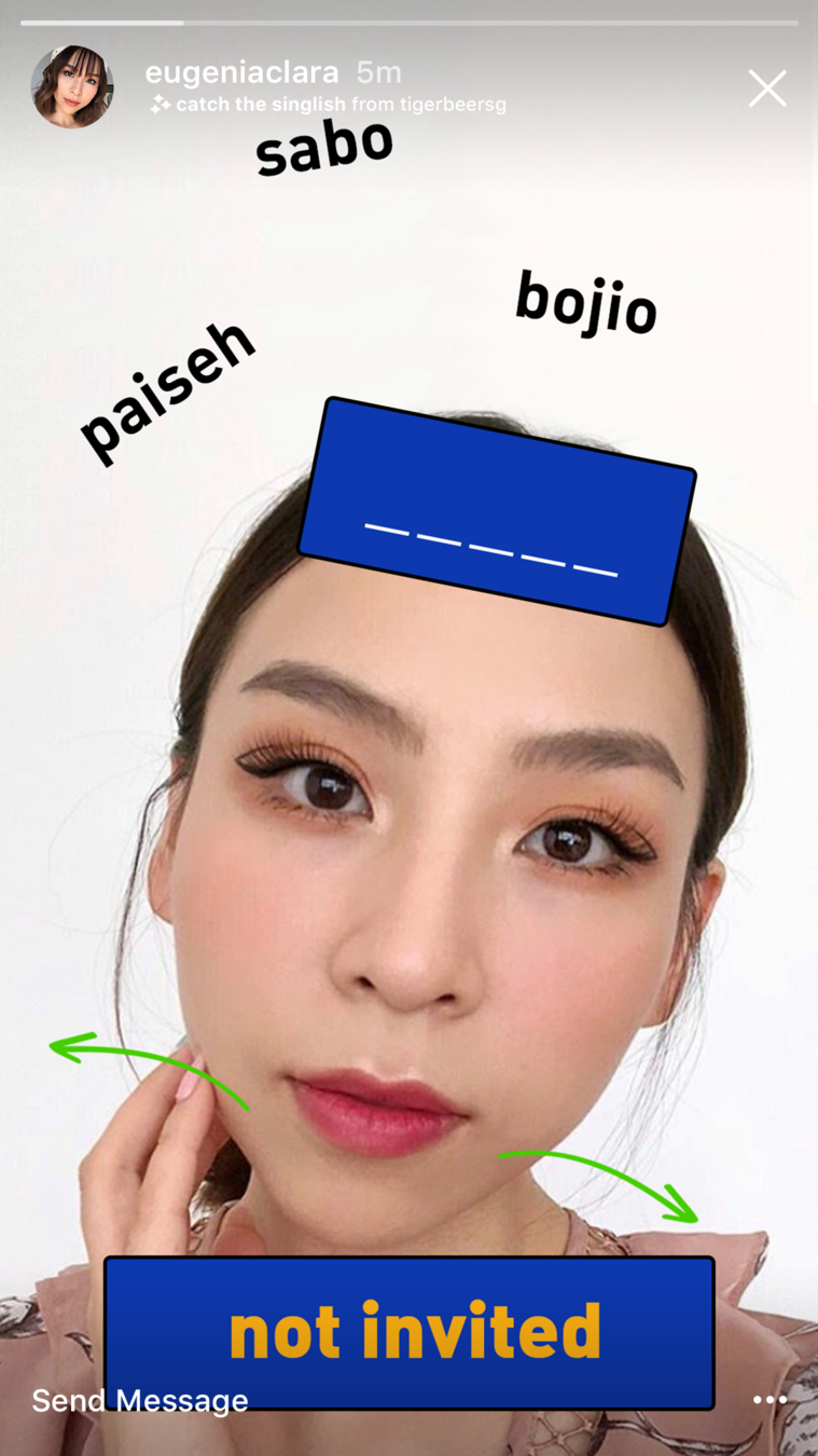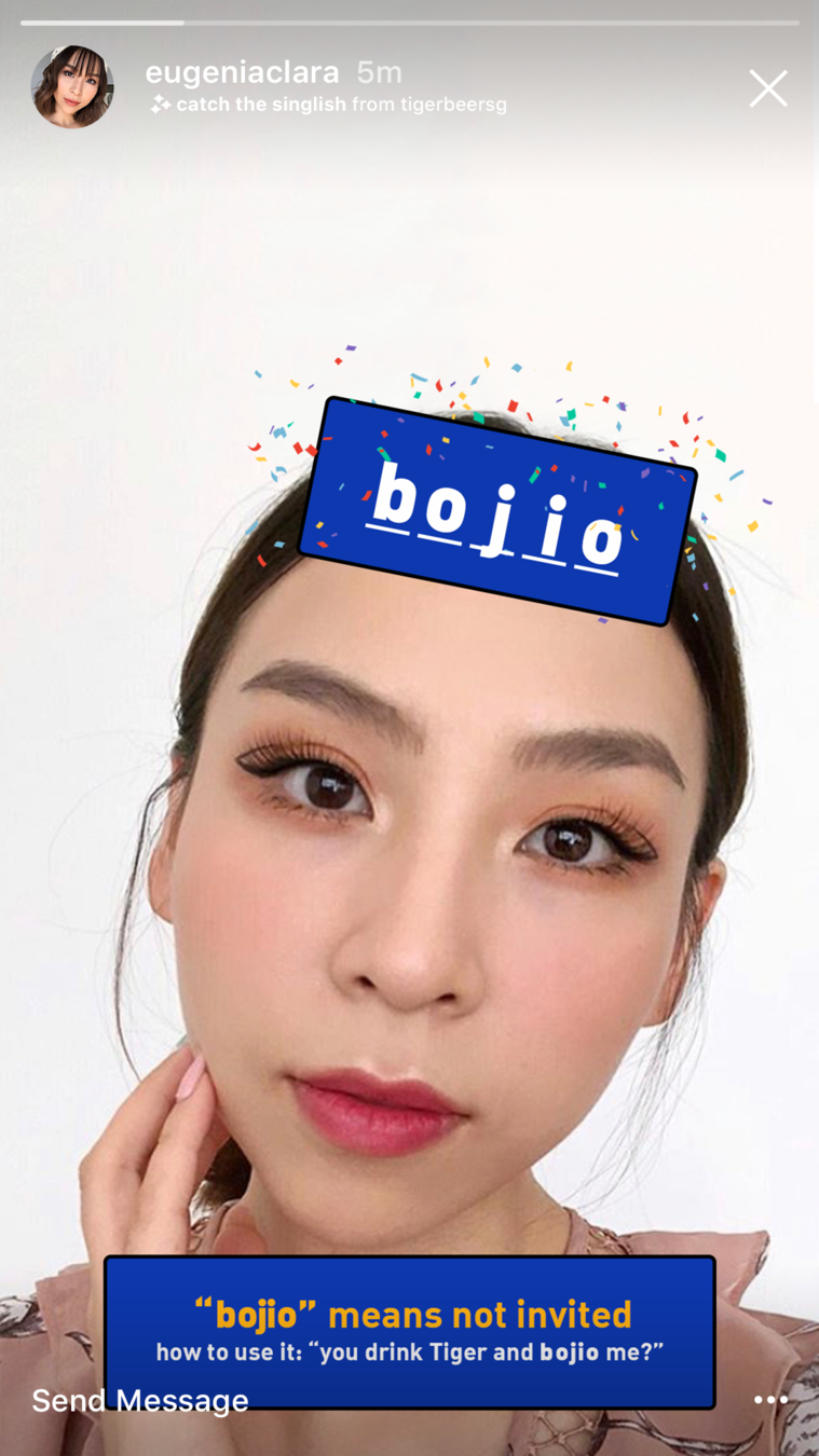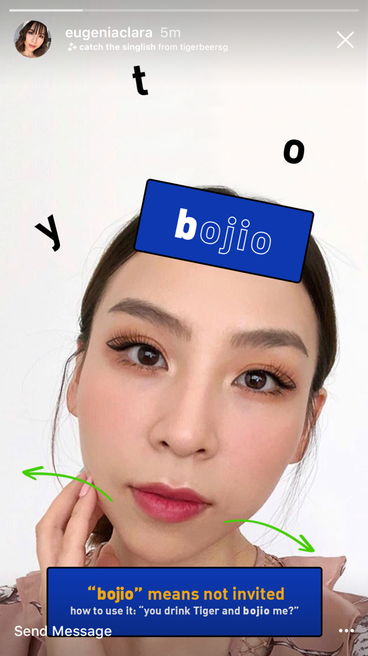 Tiger is going to target the millennials using the trend of Instagram Story Filter/template with some interactive AR games to promote Singlish and Tiger as a local brand.