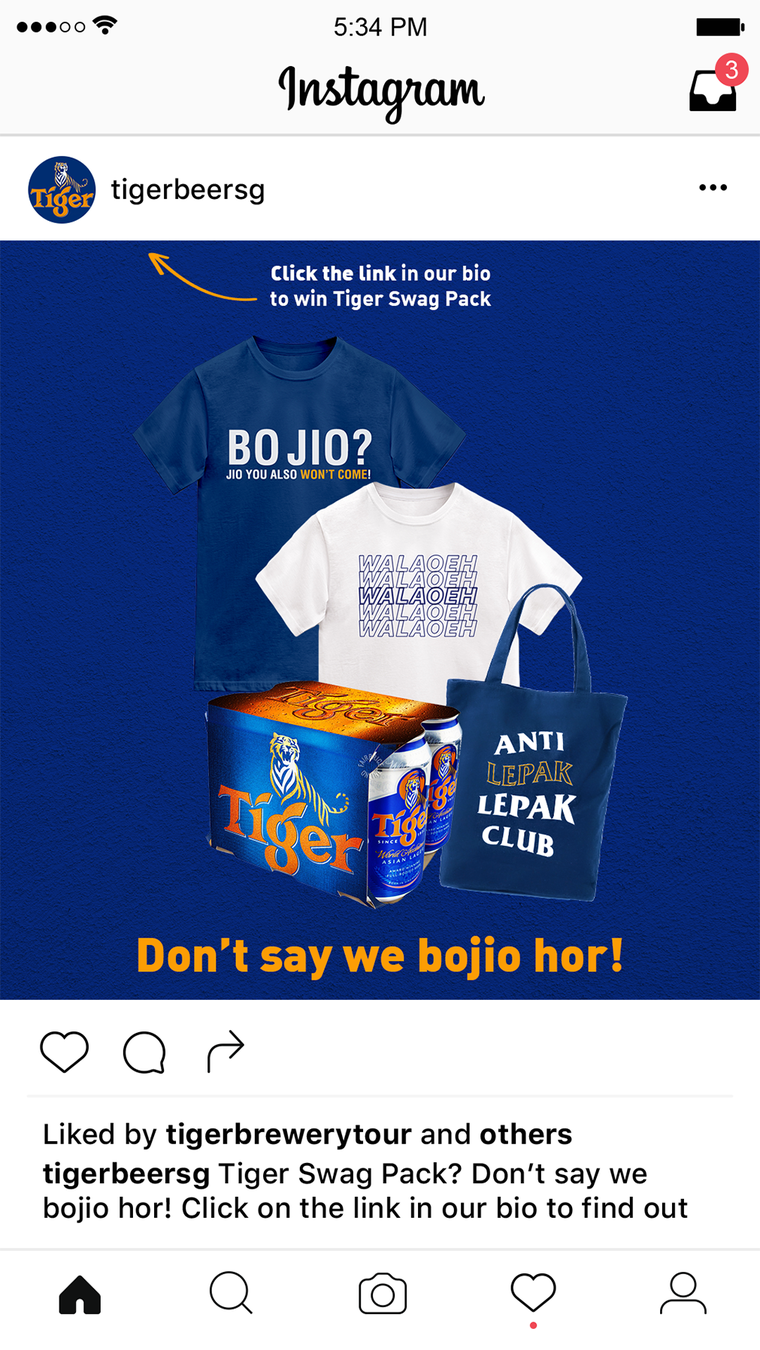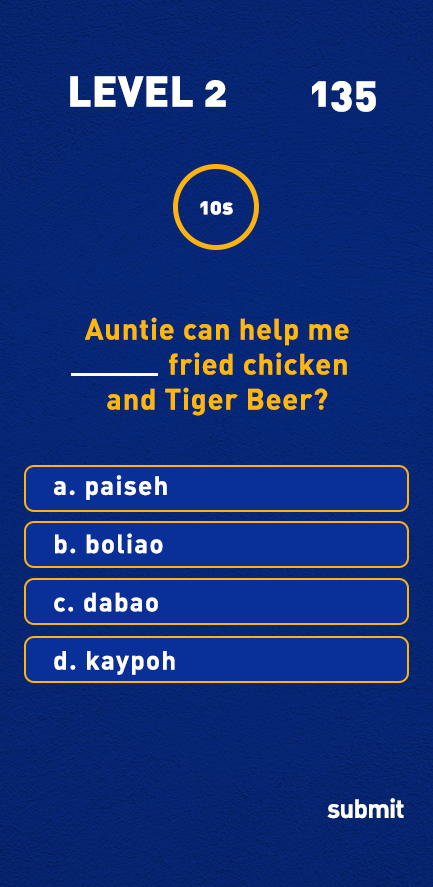 The main campaign game will be on a microsite, featuring different levels of Singlish Guessing Game. Users who completed all levels will be able to claim a 'Tiger Swag Pack'.