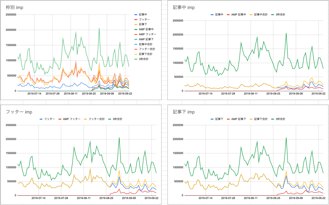 上記3枠のRevenue・imp・CTRを見てみた