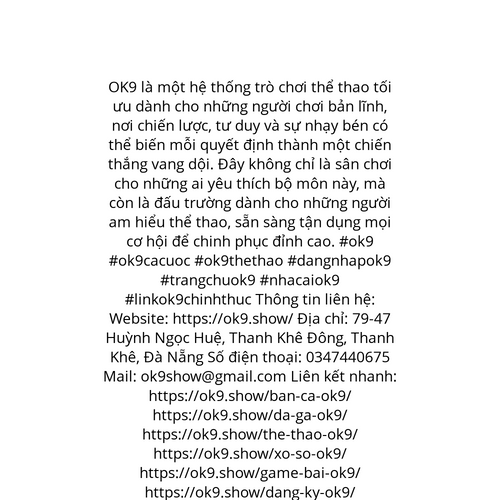 Website: https://ok9.show/ OK9 là một hệ thống trò chơi thể thao tối ưu dành cho những người chơi bản lĩnh, nơi chiến lược, tư duy và sự nhạy bén có thể biến mỗi quyết định thành một chiến thắng vang dội. Đây không chỉ là sân chơi cho những ai yêu th