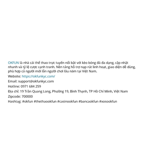 OKFUN là nhà cái thể thao trực tuyến nổi bật với kèo bóng đá đa dạng, cập nhật nhanh và tỷ lệ cược cạnh tranh. Nền tảng hỗ trợ nạp rút linh hoạt, giao diện dễ dùng Website: https://okfunkyc.com/