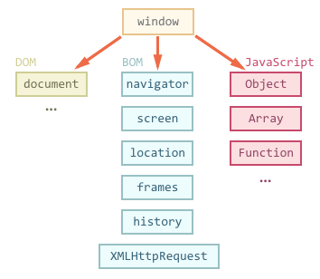It represents the browser's window. All global JavaScript objects, functions, and variables automatically become members of the window object. Global variables are properties of the window object. Global functions are methods of the window object.