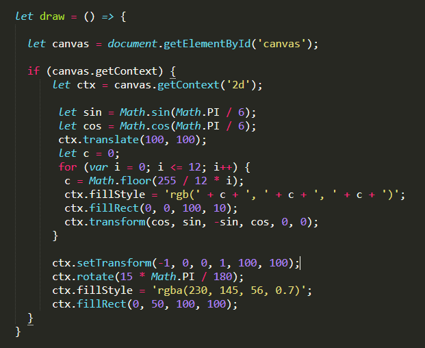 Rotates the canvas clockwise around the current origin by the angle number of radians