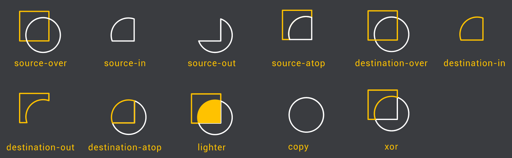Sets the type of compositing operation to apply when drawing new shapes. 'Type' is used to identify which of the twelve compositing operations to use.