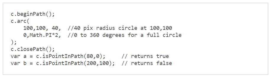 Calculating which shape is under the mouse cursor could be very difficult. Fortunately Canvas has an API to help: isPointInPath. This function will tell you if a given coordinate is inside of the current path. Here's a quick example: