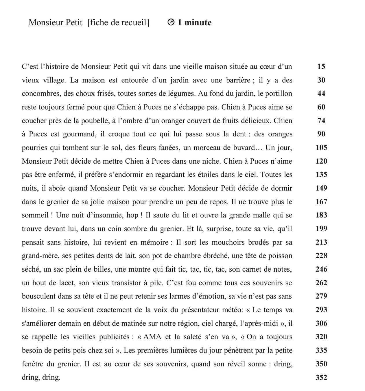 Lecture à voix haute 1 min