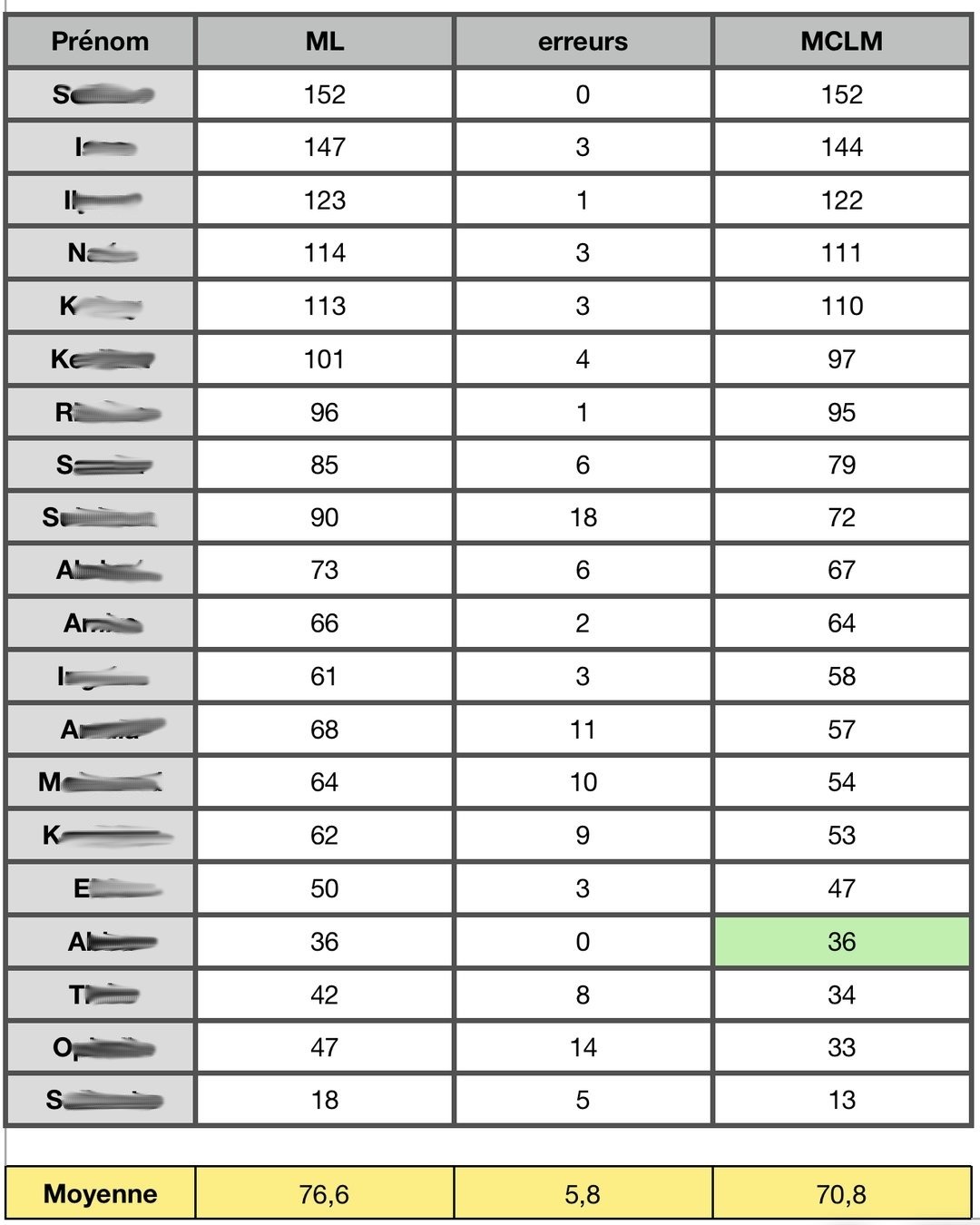 Mots lus - erreurs = MCLM