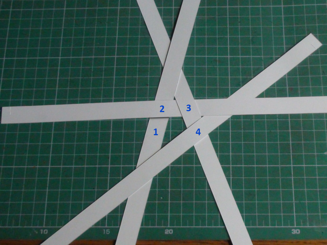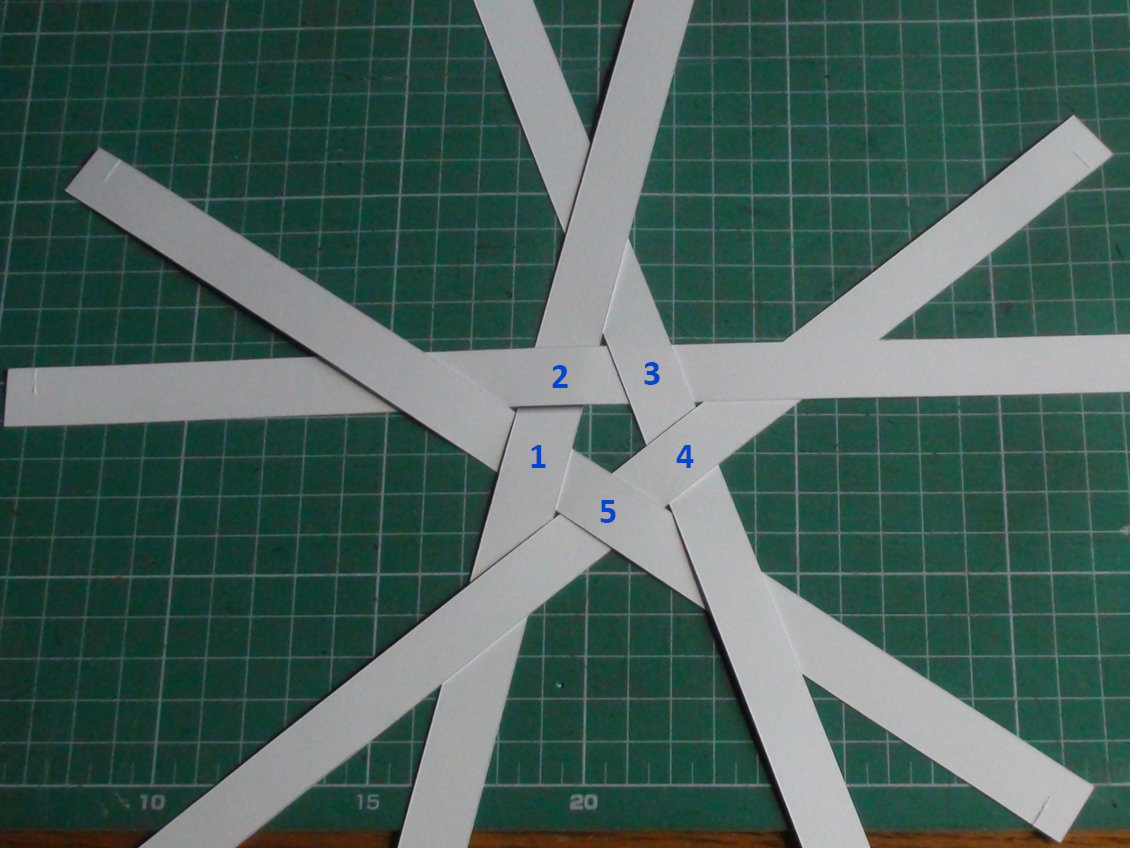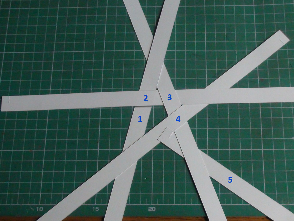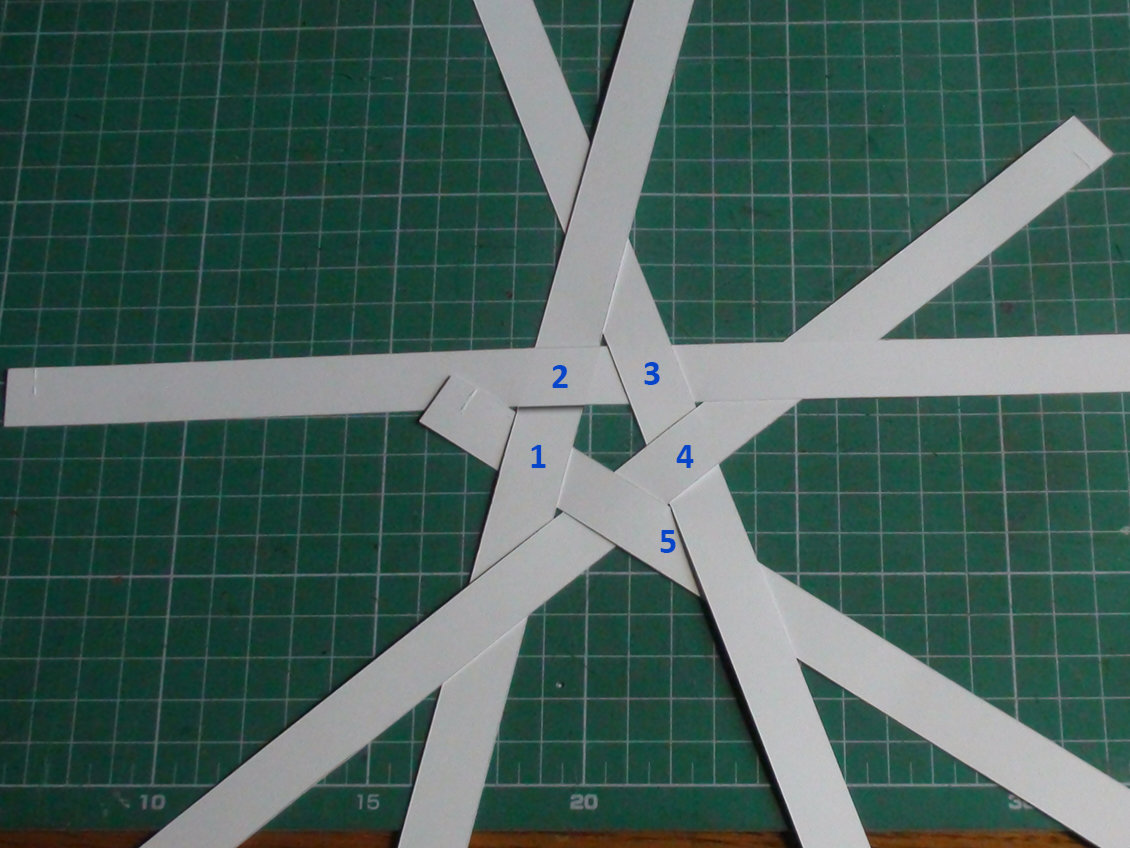 Замкнем каждую полоску в кольцо, используя прорези на её концах.