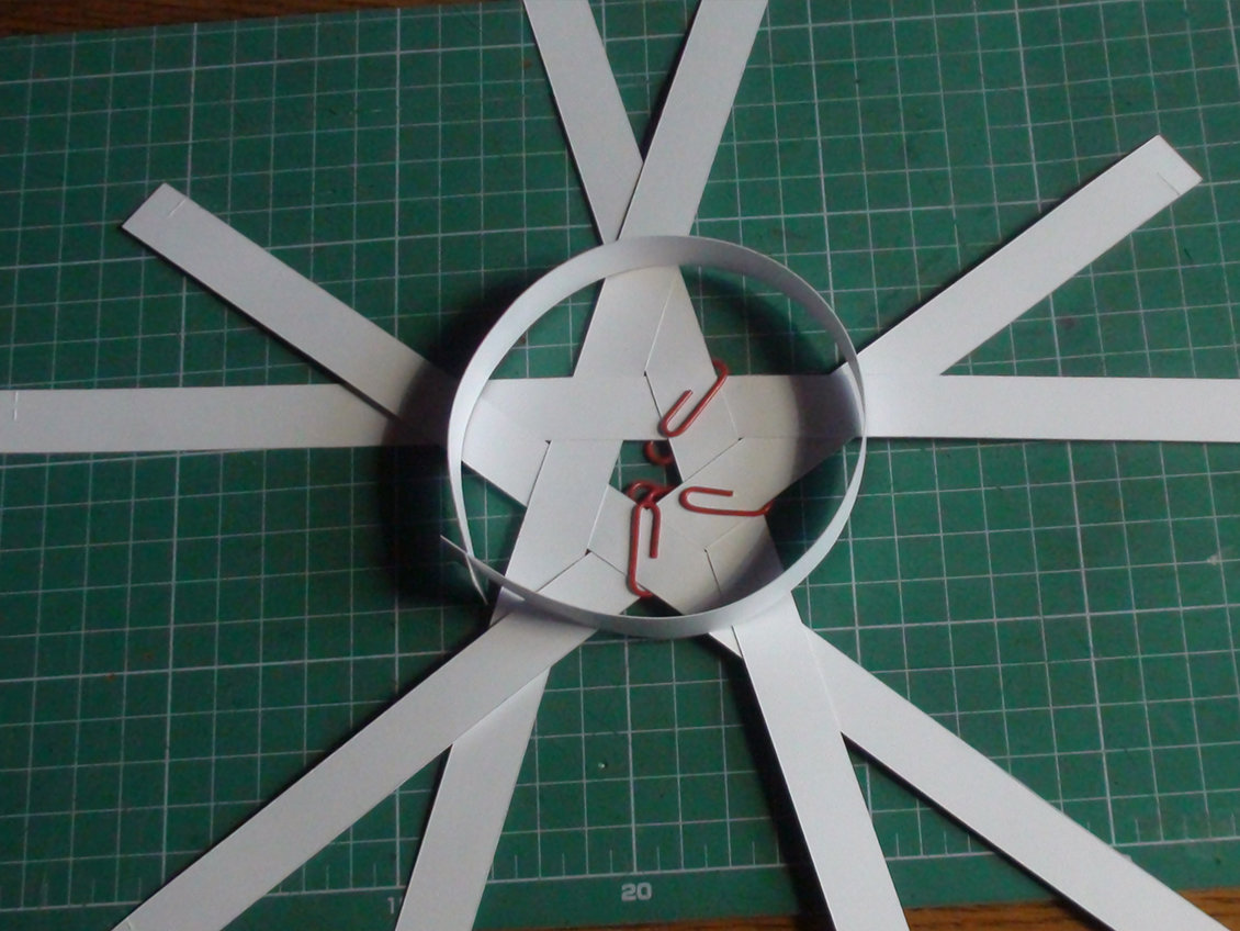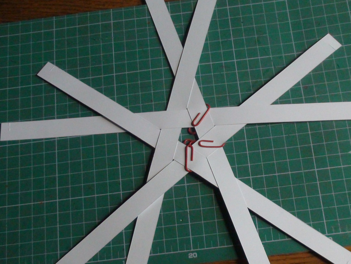 Закрепим полоски в таком положении, используя канцелярские скрепки.