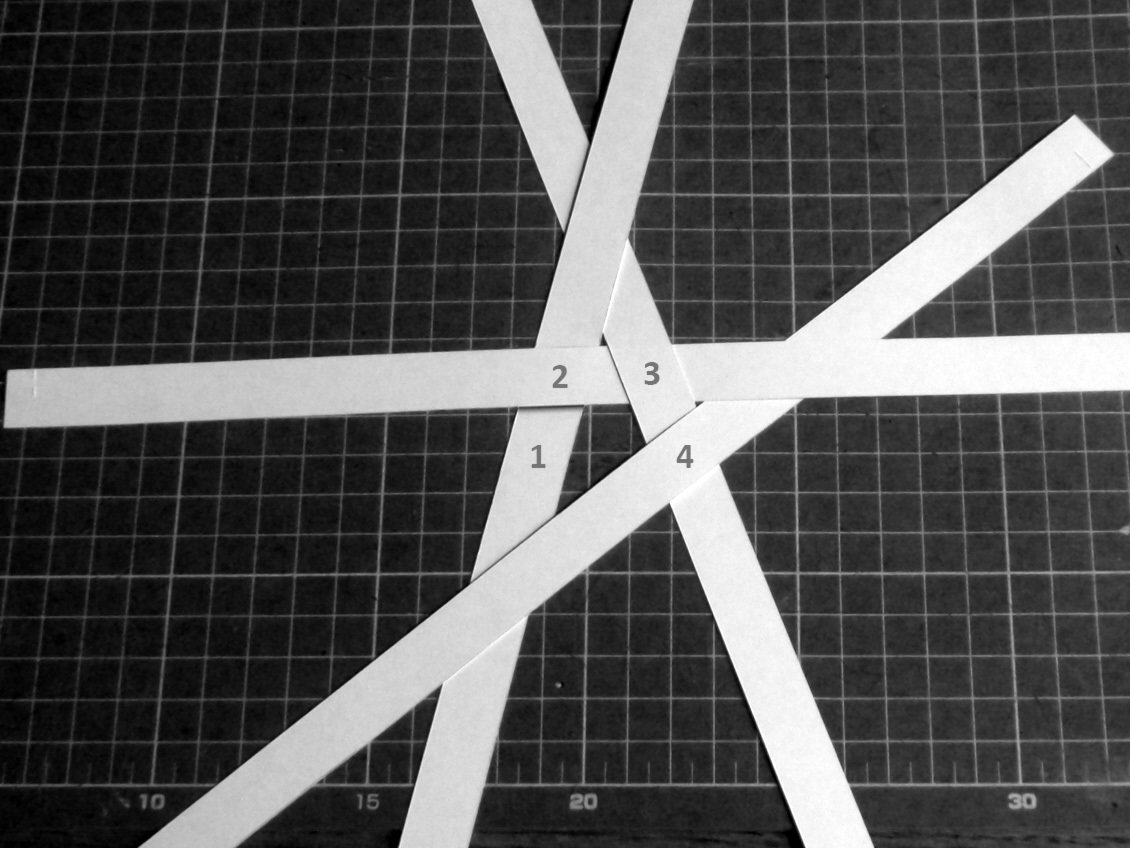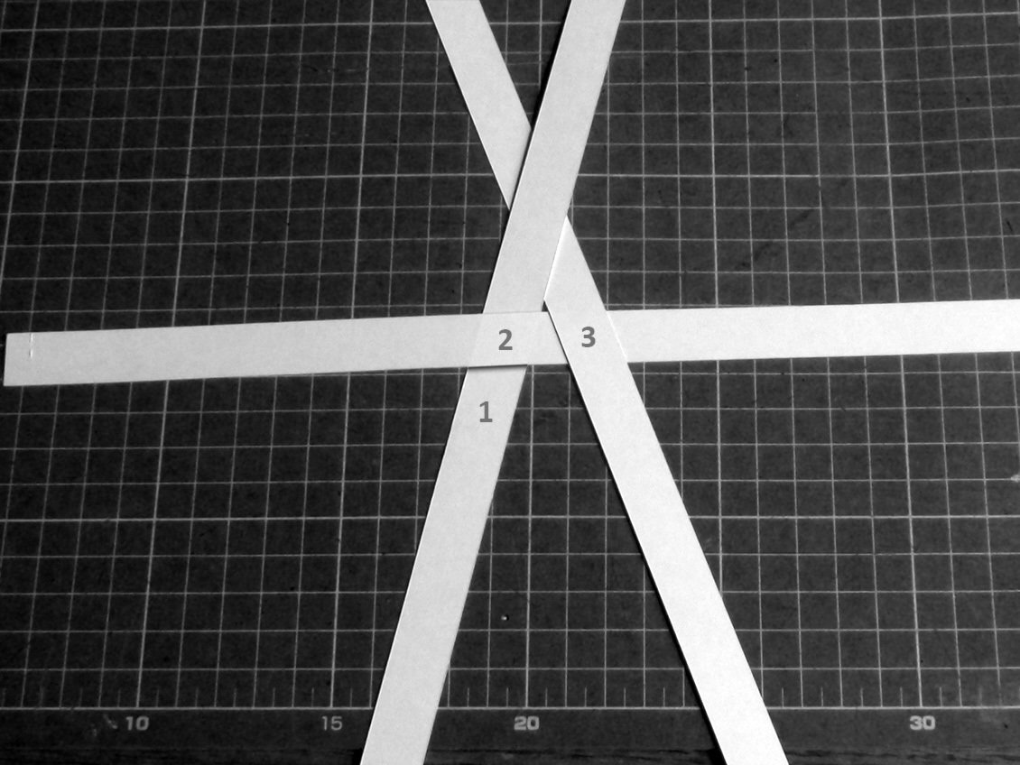 Добавим третью полоску так, чтобы все три полоски обеспечивали циклическое перекрытие. Назовём такую комбинацию "правильным" узлом.