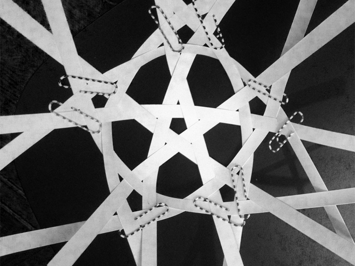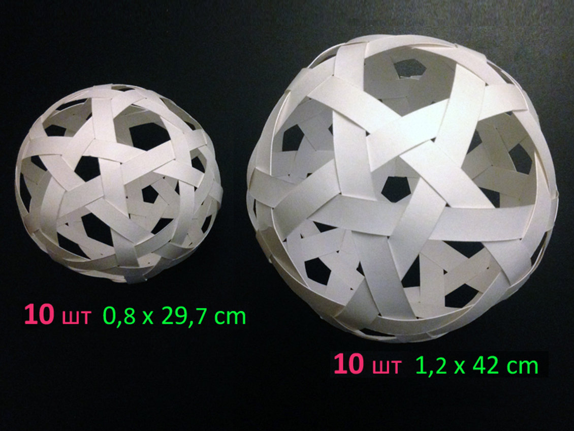 Сформируем 5 пятиугольников, изгибая соответствующие полоски и закрепляя "правильные" узлы скрепками.