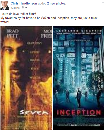 Below are a few examples of the tv shows my target audience watches. As you can see, the movies he watches and the pages he follows are all under the genre of thriller.
