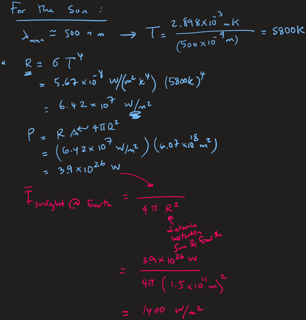 Q: Estimate the total power emitted by the sun, and the intensity of solar radiation on Earth.