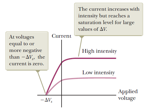 - The intensity of the light determines the number of photons, and therefore the number of ejected electrons.