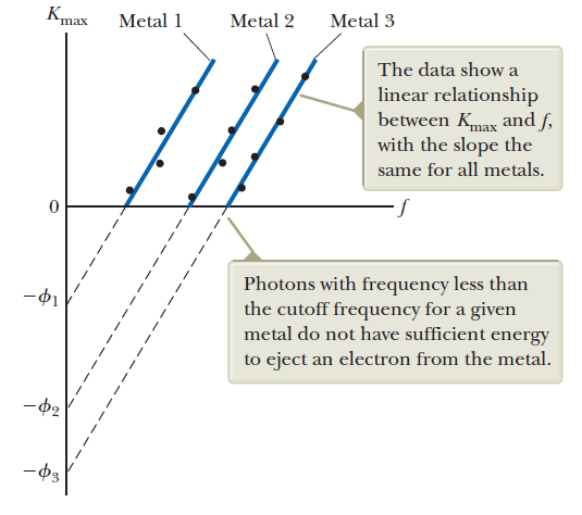- The kinetic energy of the ejected electron is dependent on the incoming photon's energy (which is proportional to its frequency), not on the intensity.