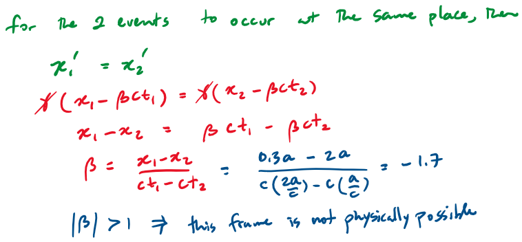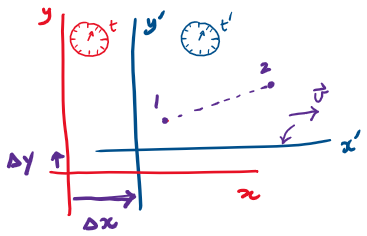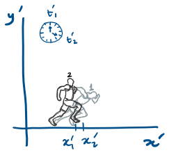 Suppose that there are two events (a and b), which from the K-perspective happen at the same position, but are separated by a time interval T0. Question is, what time, T', separates the same two events from a moving perspective K'?