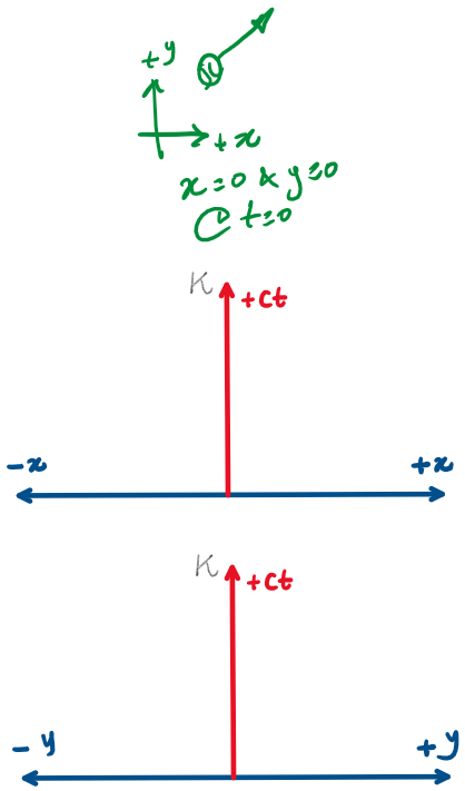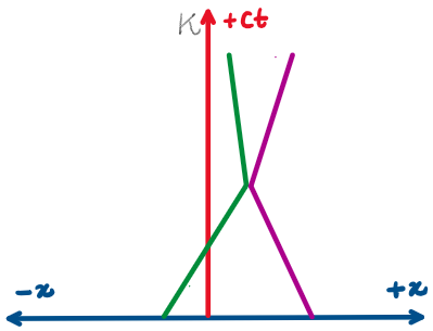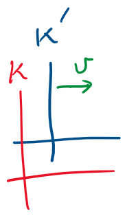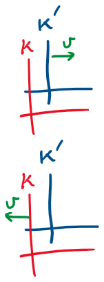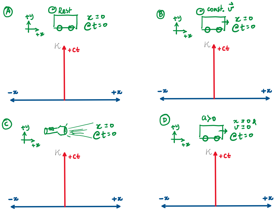 In all of the examples on this slide, shown are the events in K and all the K'(s) overlaid on the same spacetime diagram.