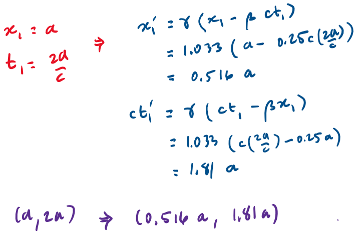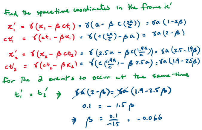 What are the spacetime coordinates of these events in an inertial system K' that is moving at 25% the speed of light in the +x direction relative to K.