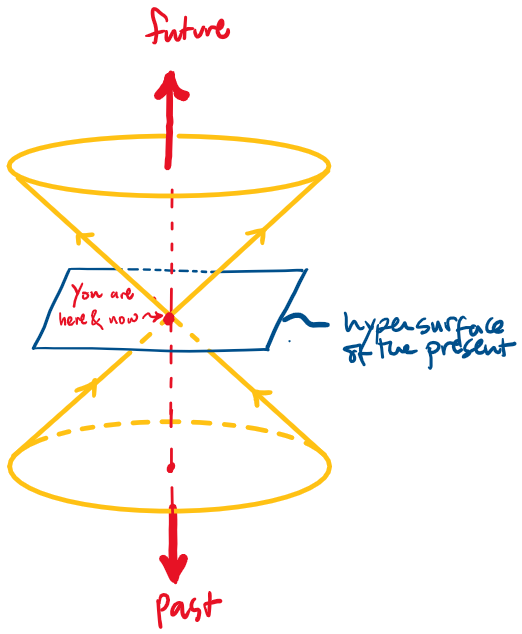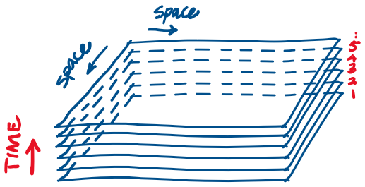 From any given perspective, events unfold in a 4-D spacetime, where a new version of 3-D space manifests at every point in time -- like a 4-D flip book.