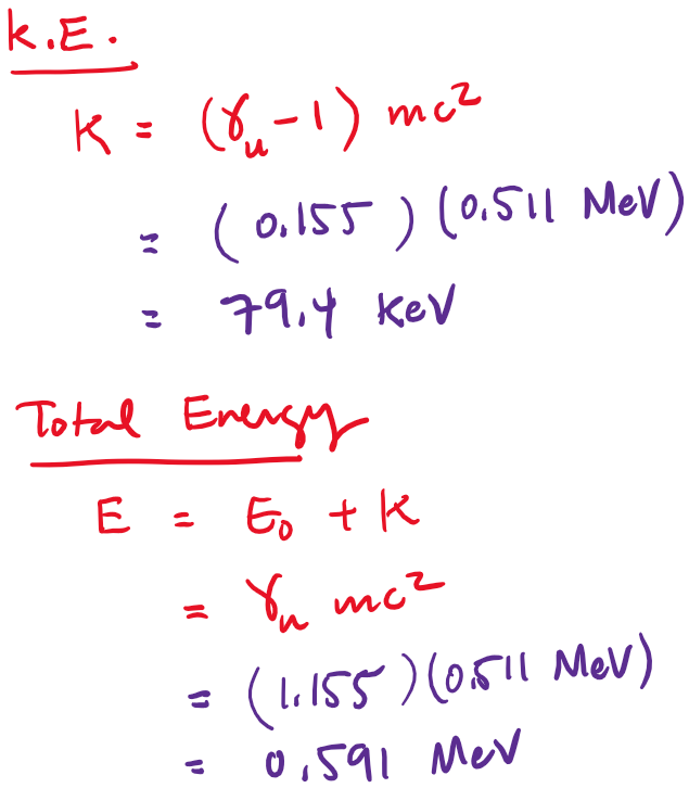 Suppose an electron is traveling at 0.5C in the lab frame. In units of eV, what is its rest energy, kinetic energy, and total energy, (a) in the lab frame, and (b) in its own frame?
