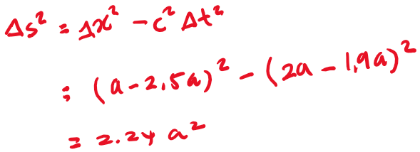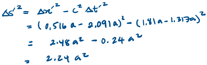 Calculate the spacetime intervals between events 1 and 2 in K and K'