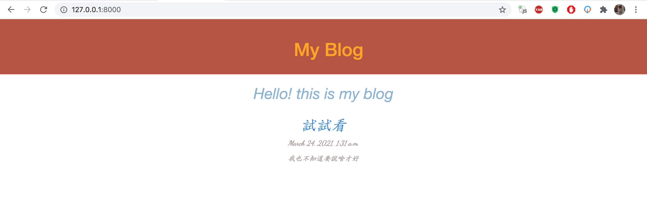 你的首頁 http://127.0.0.1:8000/ 就會有 navbar 啦
