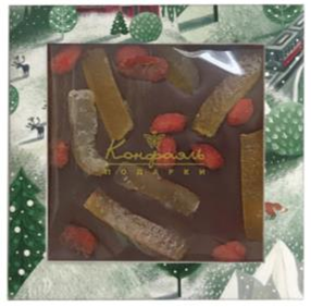 Шоколад горький с ягодами годжи и цукатами апельсиновых корочек + открытка от компании