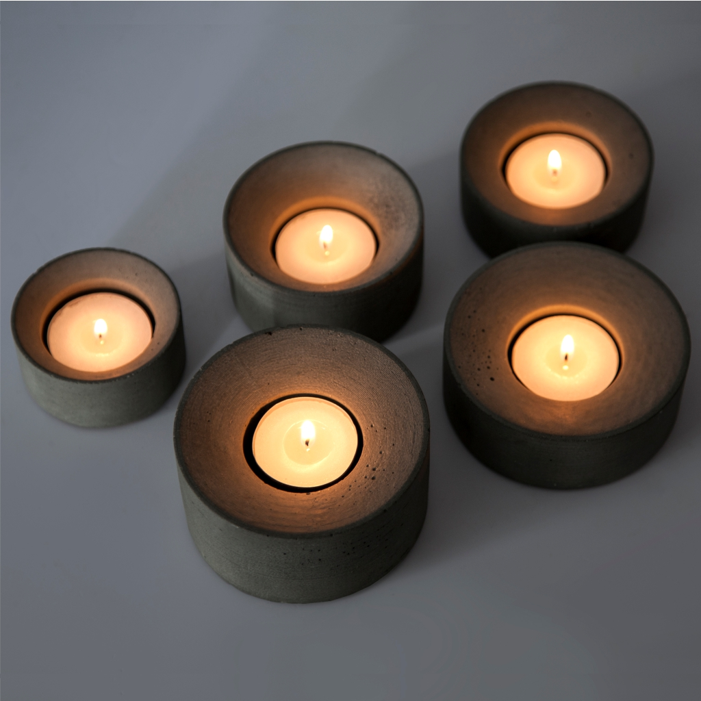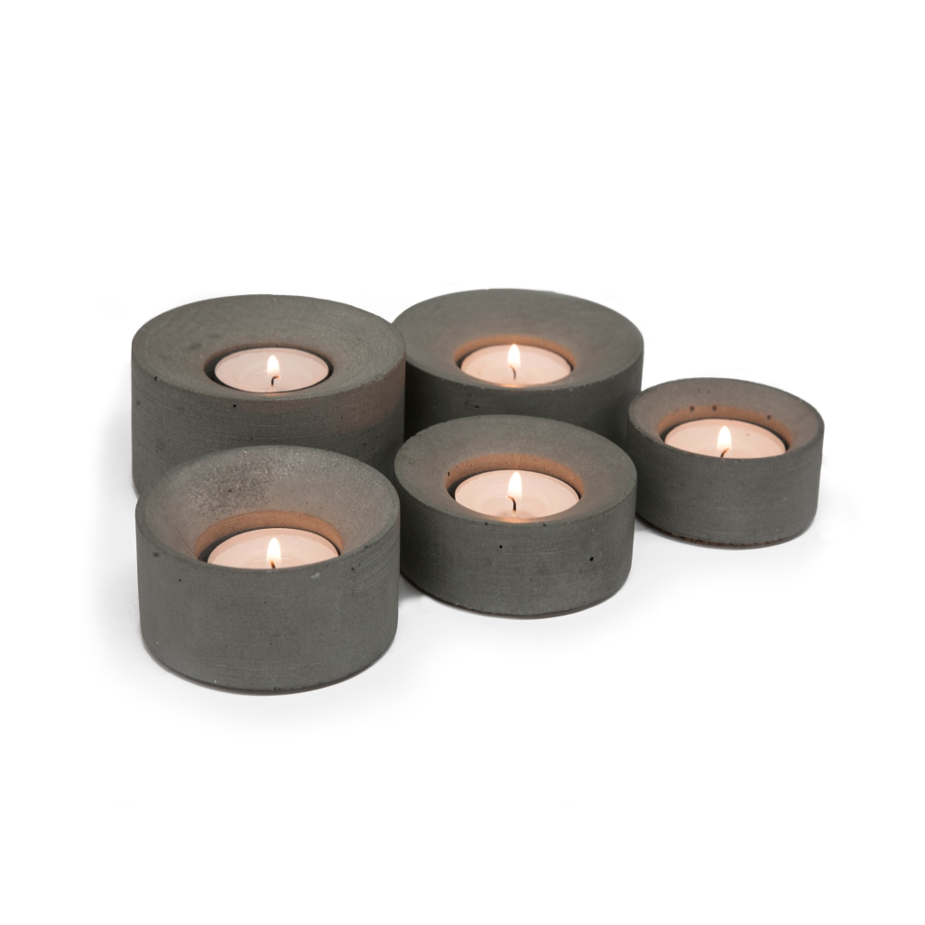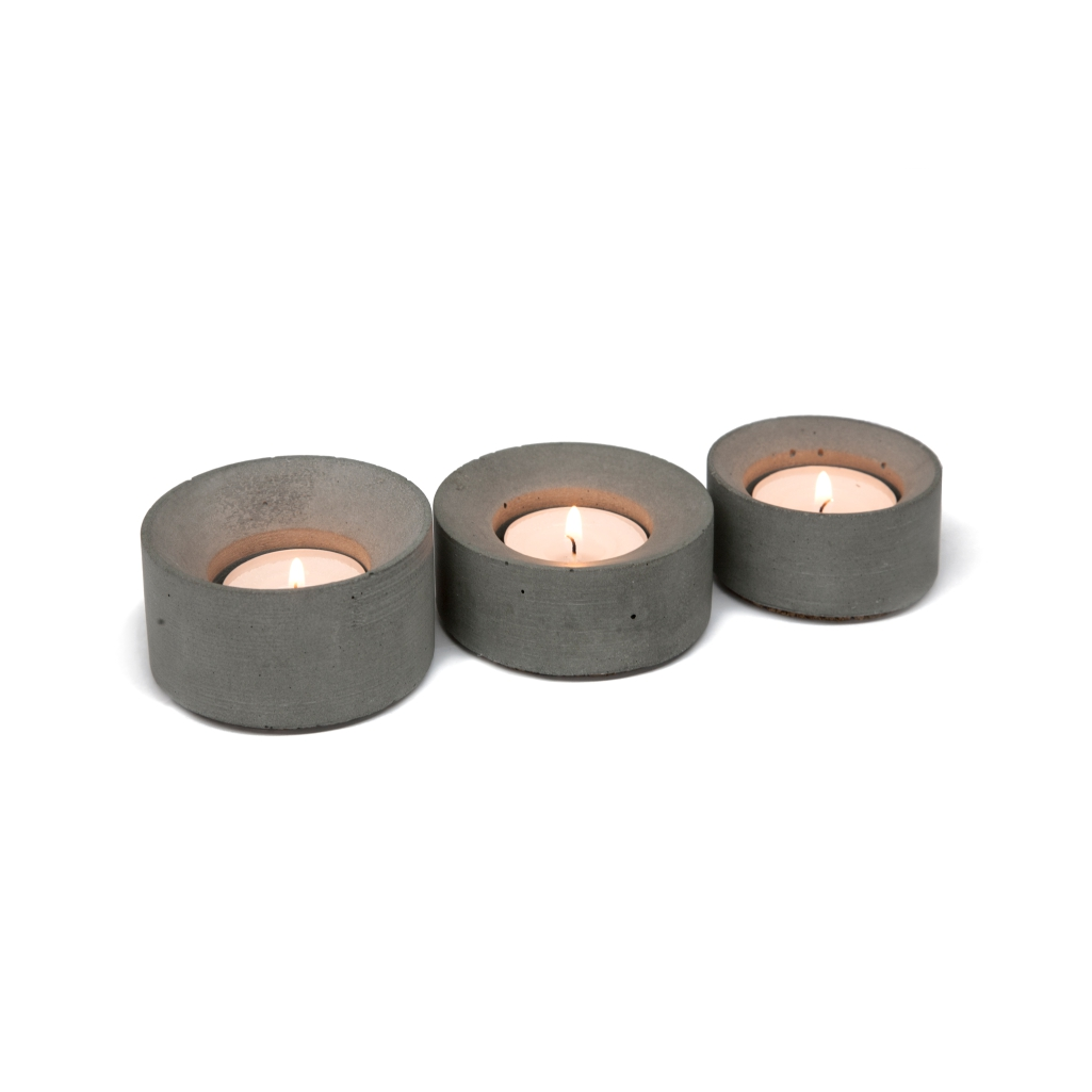 Подсвечники GU – бетонный дом для уютных огоньков, сокращенная версия подсвечников GU L. Набор состоит из 3 подсвечников. Дно имеет пробковое покрытие.