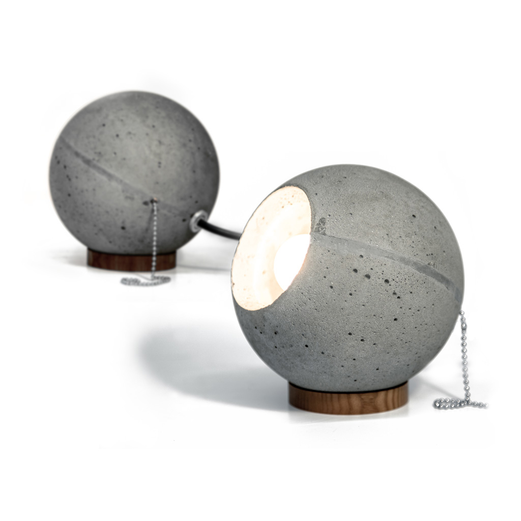 Светильник представлен в двух вариантах-настольный и подвесной. Благодаря технологии фибробетона, подвесной светильник весит 2,35 кг! Что позволяет его подвешивать непосредственно за провод, без применение металлического троса. Оба варианта светильников диммируются.