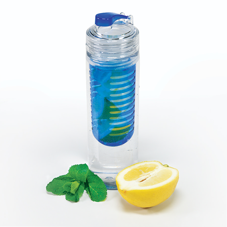 Бутылка пластиковая, с контейнером для ягод и фруктов. Витаминизированная вода - отличный источник энергии и сил. Просто положите любимые фрукты в контейнер и налейте воды в бутылку, через несколько минут Вы получите полезный и вкусный напиток.