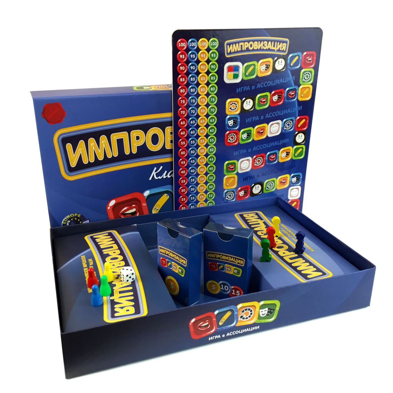 «Импровизация» — игра для тех, кто хочет весело и с пользой провести время в творческой атмосфере. Цель игры — быстрее других провести фигуры по полю, выполняя задания и отгадывая слова, которые объясняются различными способами.