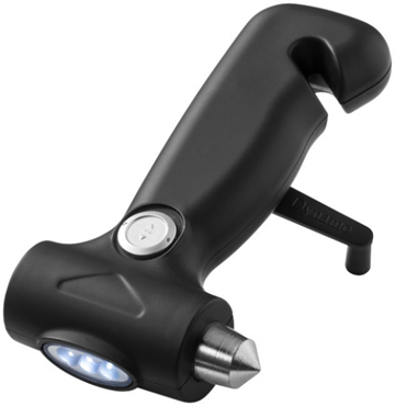 Автомобильный инструмент «3 в 1» для чрезвычайных ситуаций включает молоток для забивания стекол, нож для ремней безопасности и динамо-фонарь. Встроенный перезаряжаемый аккумулятор. Эксклюзивный дизайн. АБС-пластик с мягким на ощупь покрытием.