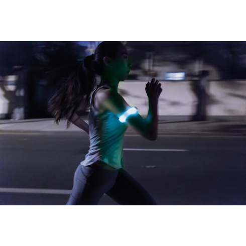 Светящаяся повязка на руку со встроенными светодиодами для бега, благодаря которой вас будет легче заметить в темное время суток.