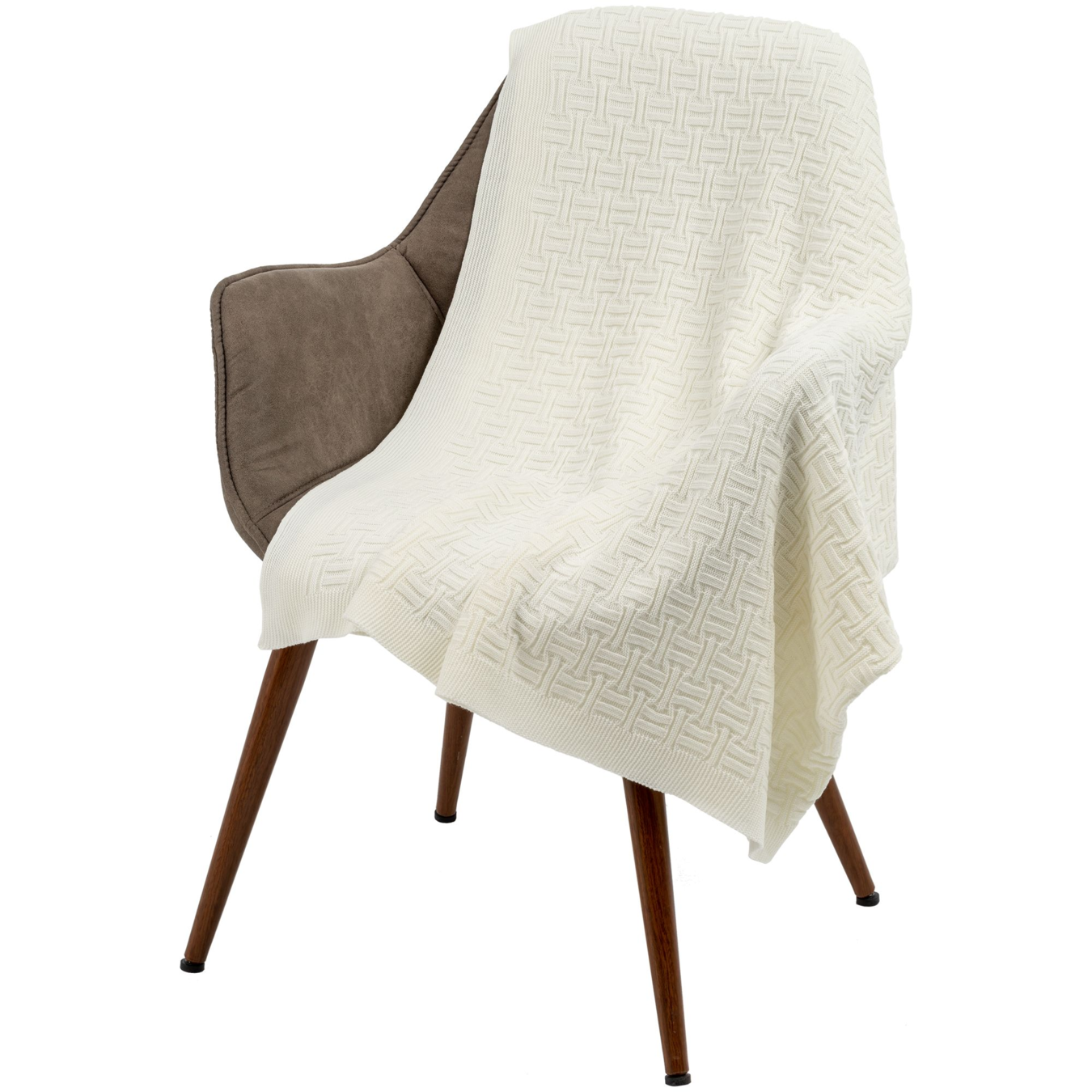 Двусторонний плед фактурной вязки. Благодаря рельефному узору плед мягко и легко драпируется.