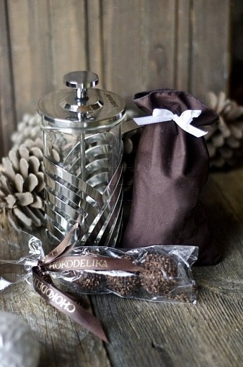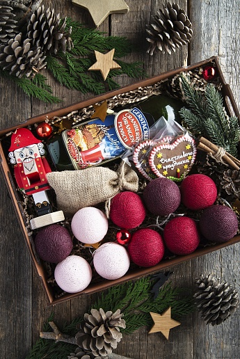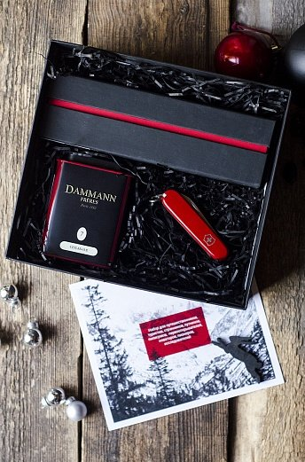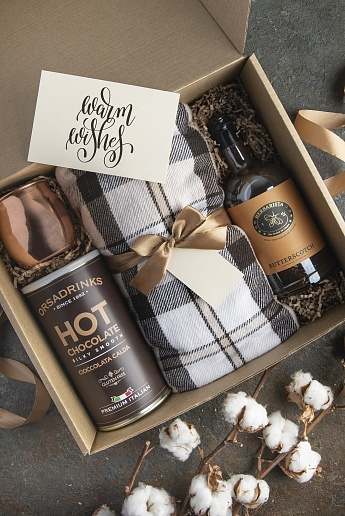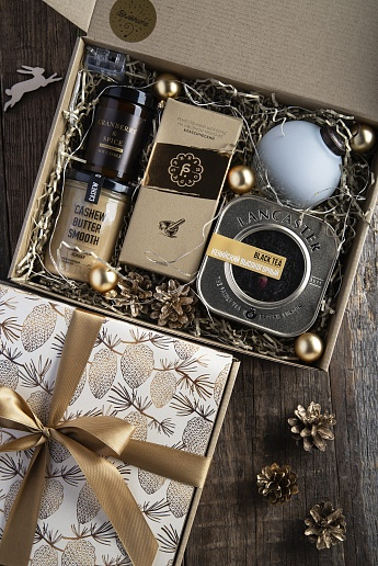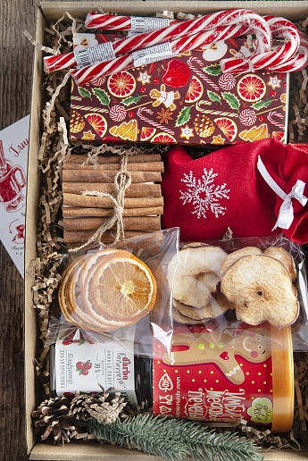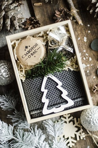 Атмосферный набор с угощением и элементом, который будет стоять на столе и ежедневно напоминать о дарителе.