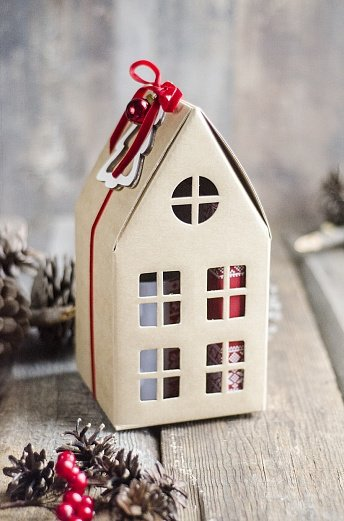 - Крафтовая коробка «Домик» с лентой и тегом (брендируется)