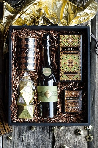 Эстетичный подарок с угощением и элементом, который останется на память. Сдержанный дизайн и преобладание приятных оттенков коричневого помогают набору выглядеть дорого и благородно.