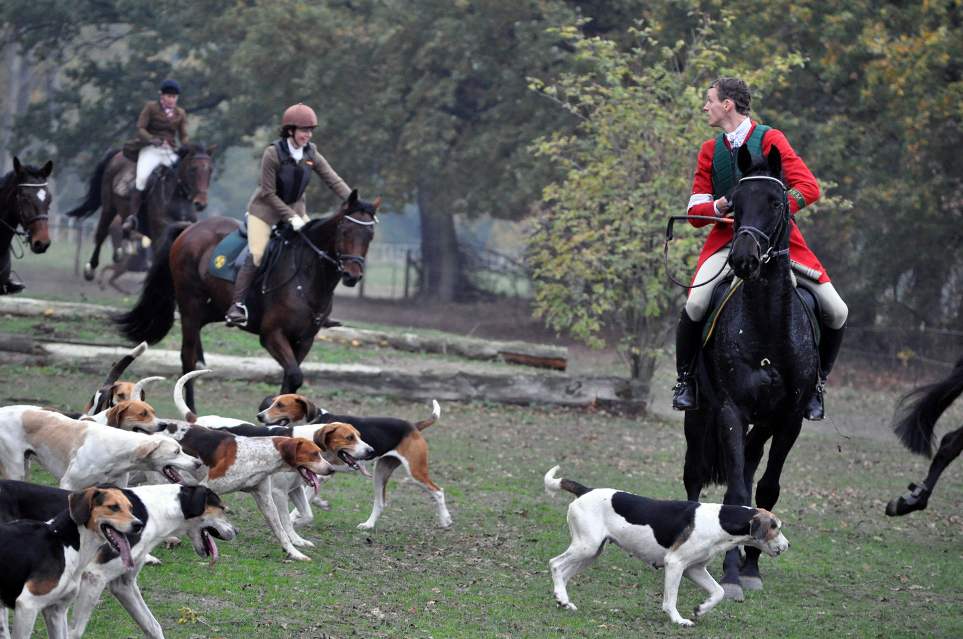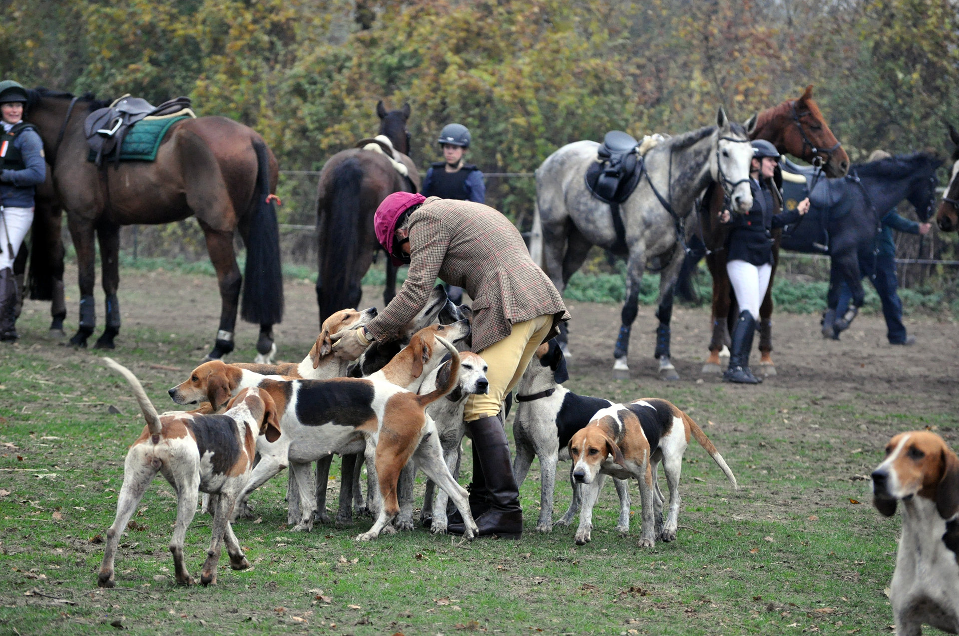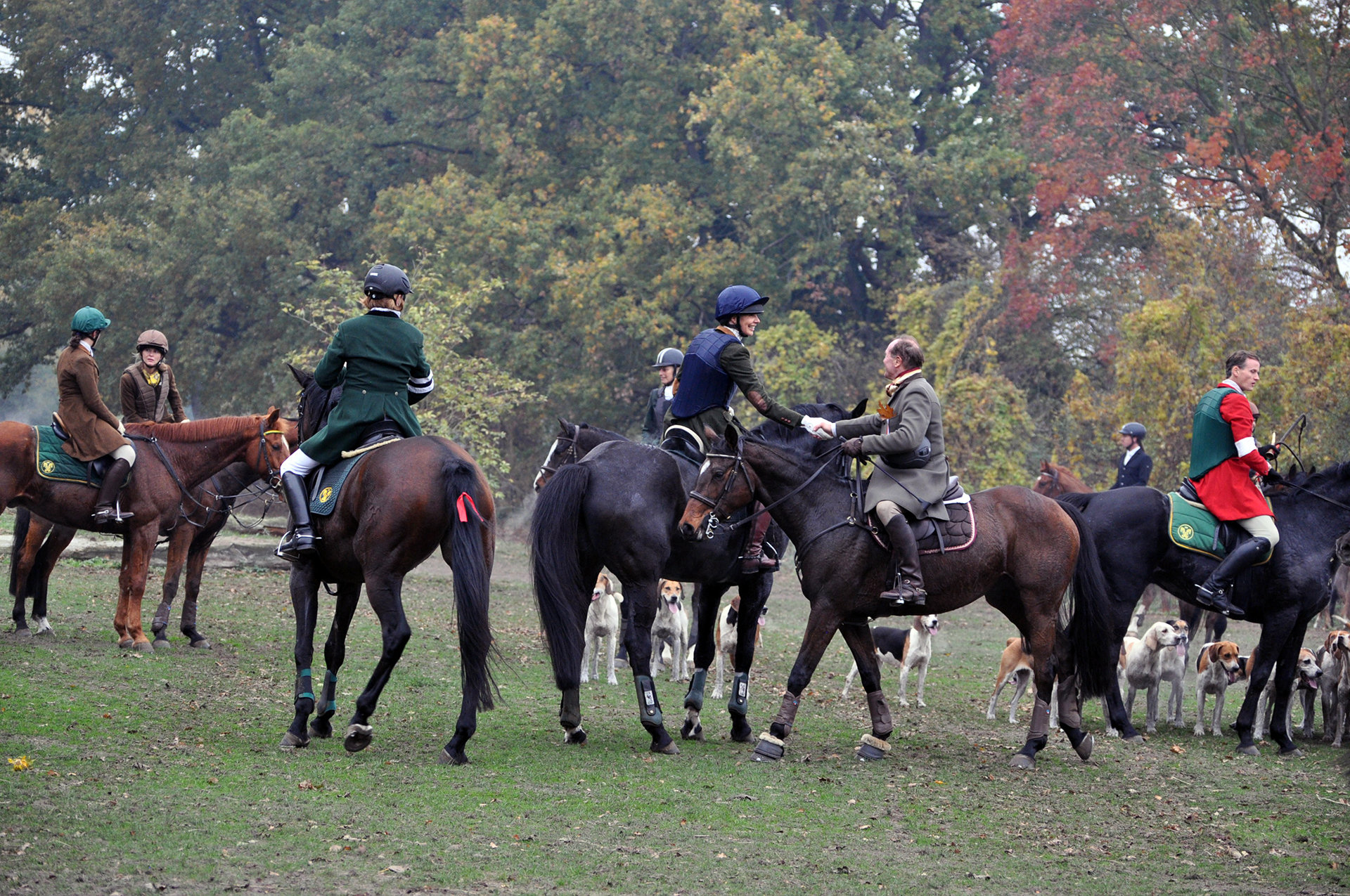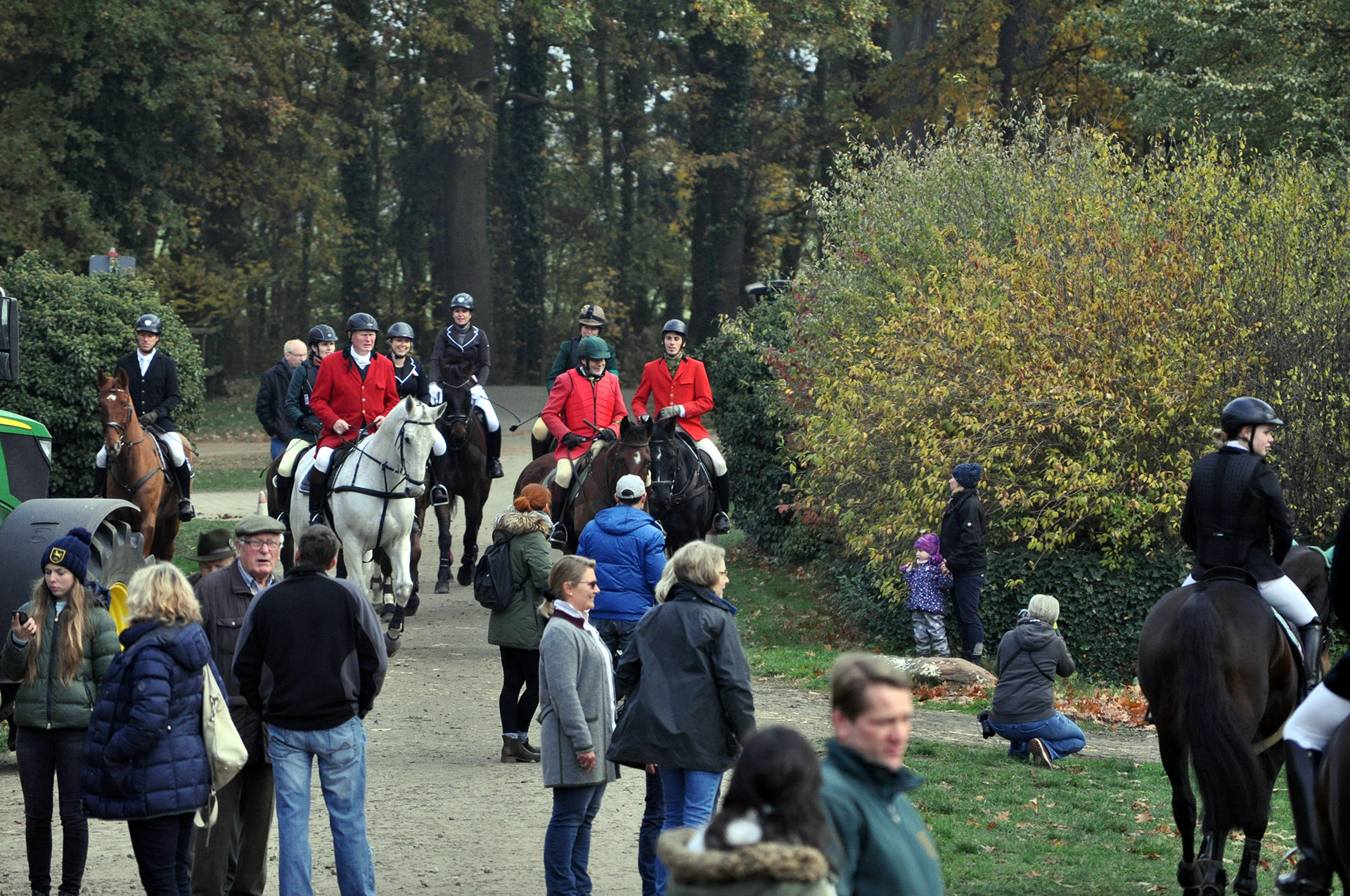 Im großen Halbkreis versammeln sich die Reiter mit ihren Pferden. Die Equipage, der Master und die Pikeure, halten die 23 Foxhounds noch zurück. Dann ein Handzeichen. 23 Hunde stürmen los, diesmal nur ein paar Meter, bis zum Rinderpansen, um den sie sich balgen. Verdiente Belohnung für die Niedersachsenmeute, letztes Signal der Bläser: „Jagd vorbei“.