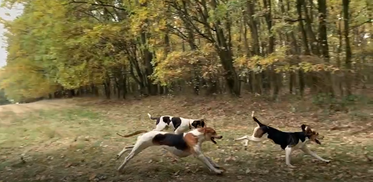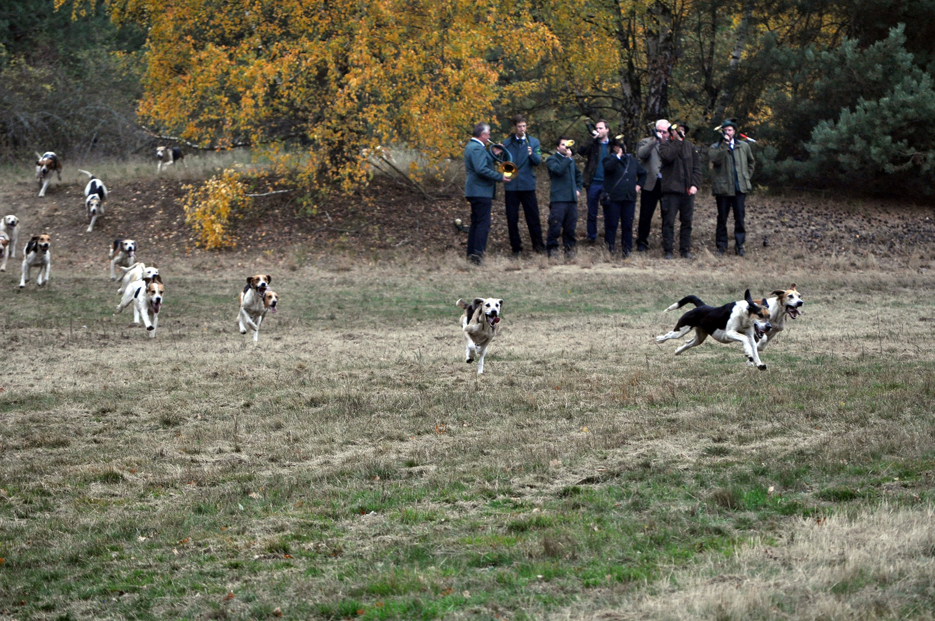 Die Niedersachsen-Meute ist unterwegs. 23 Foxhounds, kniehohe, agile Jagdhunde, meist braun-schwarz gefleckt, oft weiß an Brust und Beinen. Keine Hunde für die enge Stadtwohnung, schon gar nicht für Anfänger. Sie sind freundlich im Charakter, haben ein feines Wesen, aber eben einen ausgeprägten Beutetrieb.