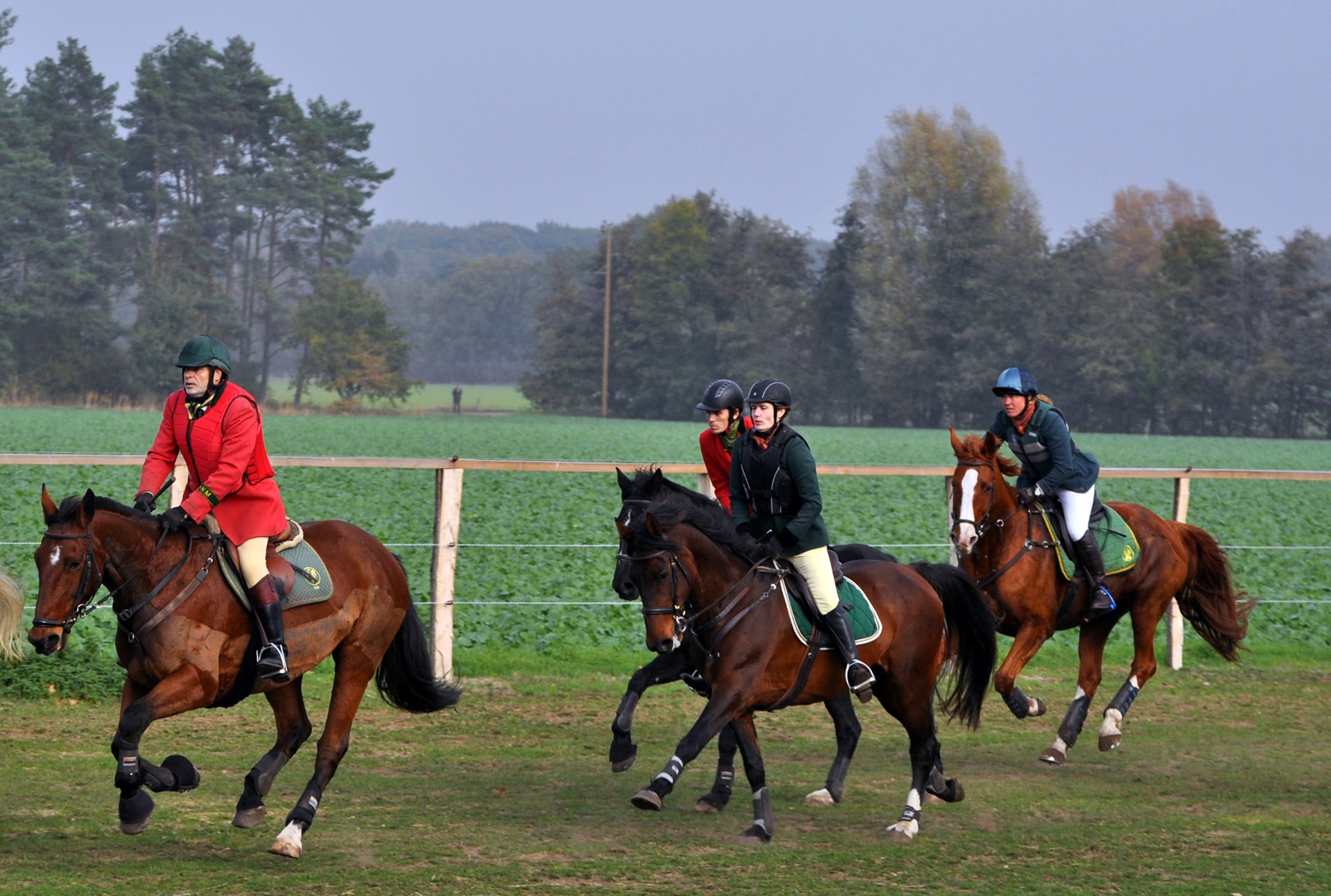 Rund 65 Veranstaltungen stehen für Hunde, Master und Pikeure jährlich im Terminkalender. 35 davon sind Schleppjagden. Vergangenes Wochenende auf dem Gut Warxbüttel, an diesem Wochenende in Hermansburg und Thedinghausen, danach in Oldenburg und in der Nähe von Verden. Niedersachsen ist eben Reiterland! Meute-Reiterland!