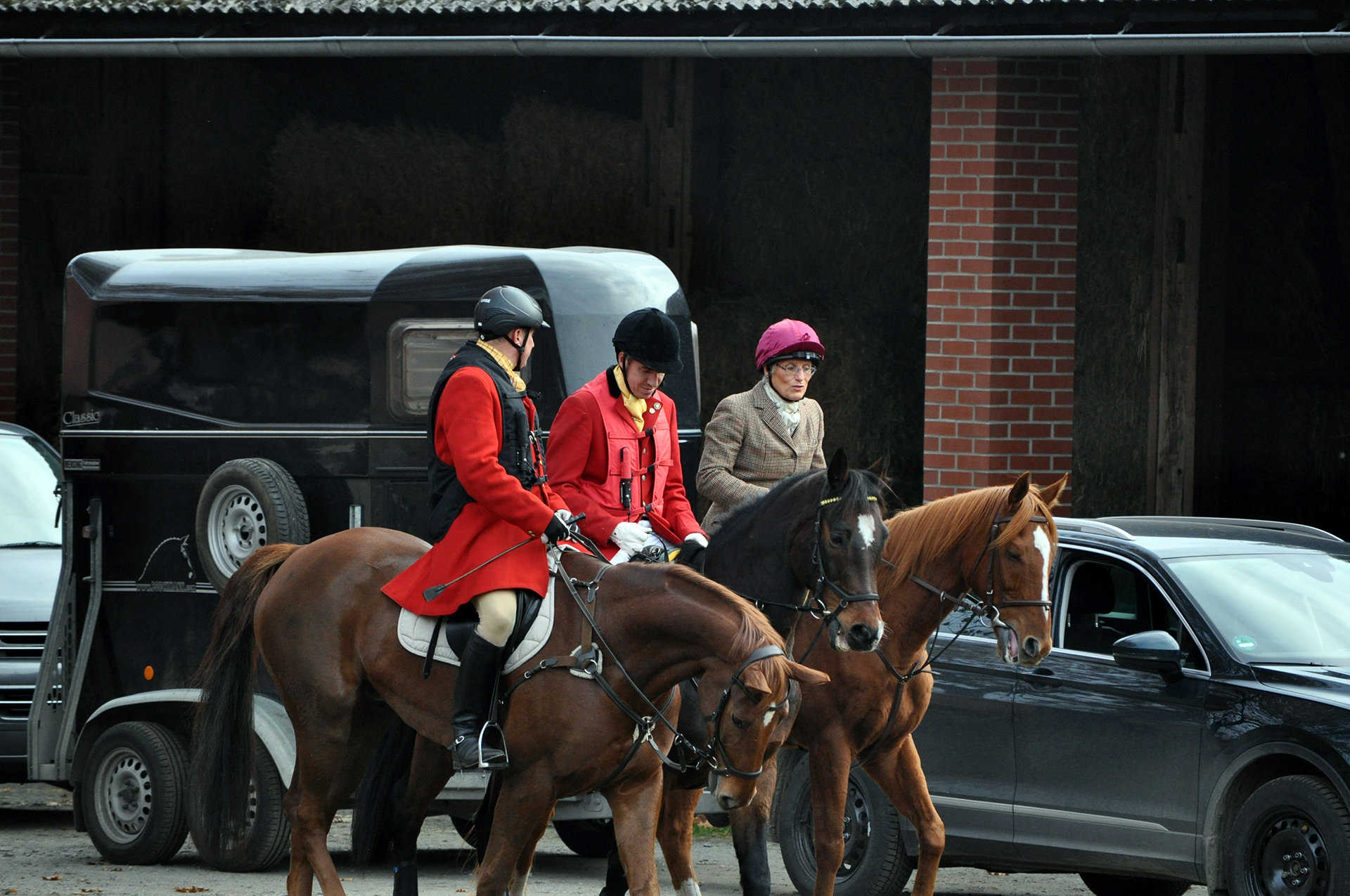 Sponagel reitet einen Holsteiner: Hot Legs. Der Name passt. „Gute Jagd“ ruft er den Reiterinnen und Reitern zu, „Gute Jagd“ schallt es zurück. Dem Master zur Seite stehen drei Pikeure. An diesem Sonntag sind es Madeleine Wätjen aus Halchter, Kreis Wolfenbüttel, Cathrin Westendorff und Elke Martsch. Sie helfen, die Hunde zu führen, halten die Meute zusammen, kümmern sich um die Ausreißer.