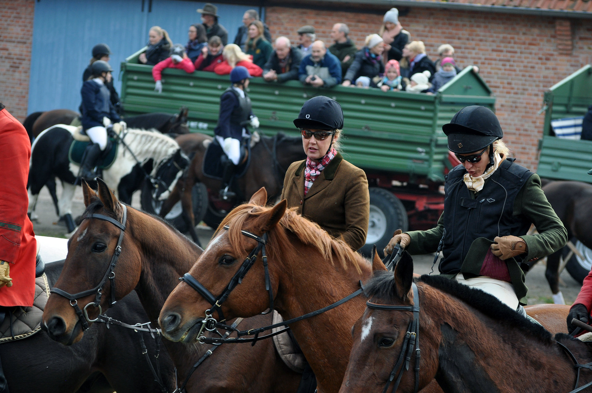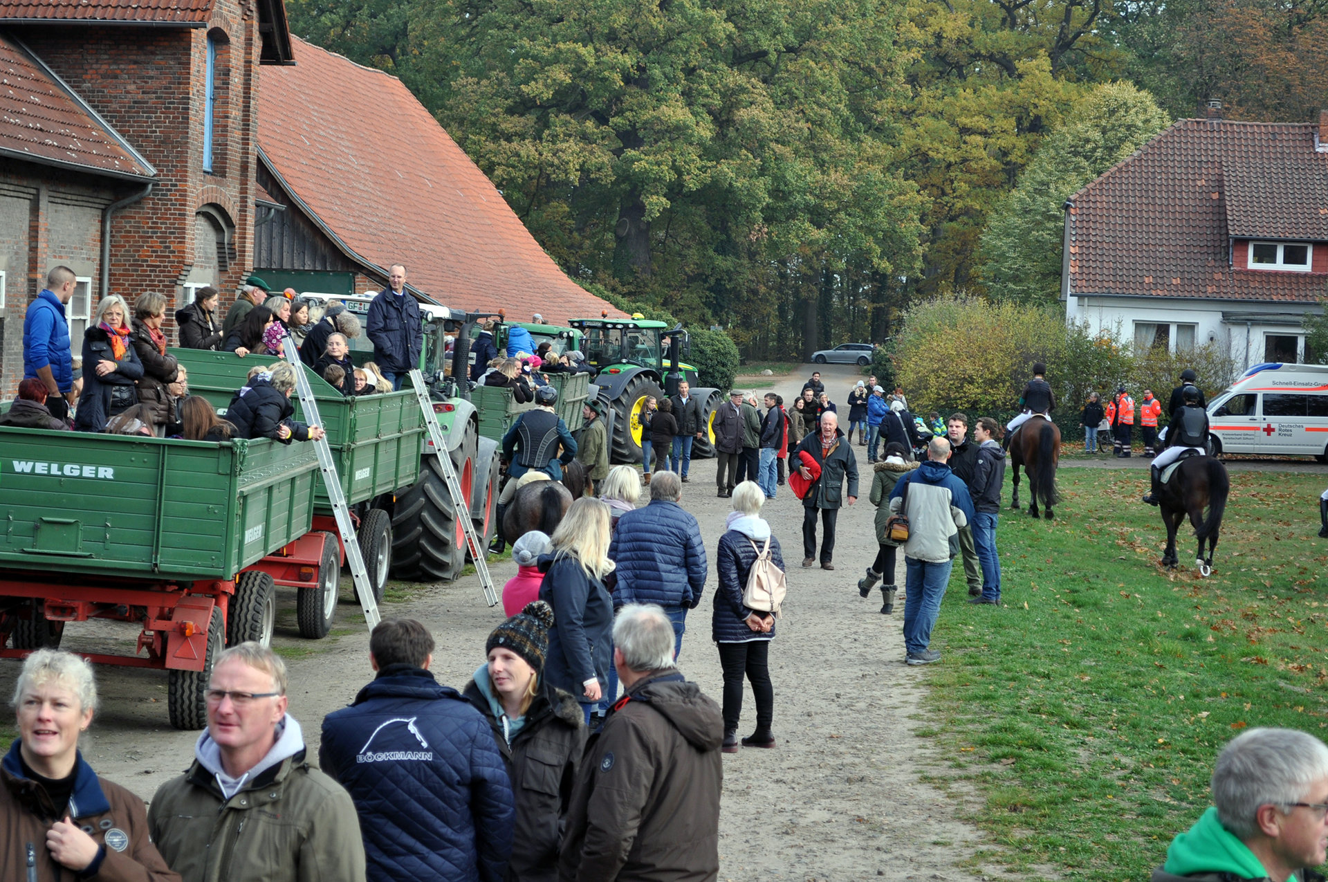 Jagdhörner erklingen auf Gut Warxbüttel bei Schwülper, Kreis Gifhorn. 61 Reiterinnen und Reiter, 23 Hunde und rund 300 Zuschauer werden auf dem Hof der Familie Schulte Uemmingen begrüßt, schmettern ein lautstarkes „Horrido“ – zu einer ganz besonderen Jagd, zu der der Reit- und Fahrverein Papenteich eingeladen hat.
