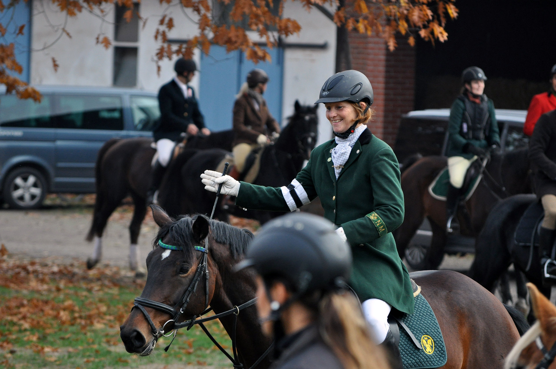 Irgendwo mittendrin reitet Mechthild von Lucke. Sie ist die Jagdherrin, trägt einen grünen Jagdrock mit weiß-schwarz-weißer Armbinde. Sie reitet eine fünfjährige Hannoveraner Stute, mit roter Schleife am Schweif. Das heißt: Vorsicht, Pferd schlägt aus. Von Lucke hat die Schleppjagd für den Reit- und Fahrverein Papenteich organisiert. Auch sie ist passionierte Jagdreiterin, ist mit 18 erstmals eine Schleppjagd geritten. „Recht spät, normalerweise gibt’s schon am Führzügel den ersten Kontakt zur Meute“, sagt sie schmunzelnd.