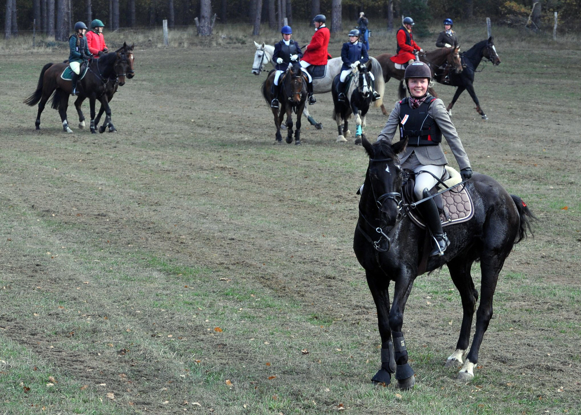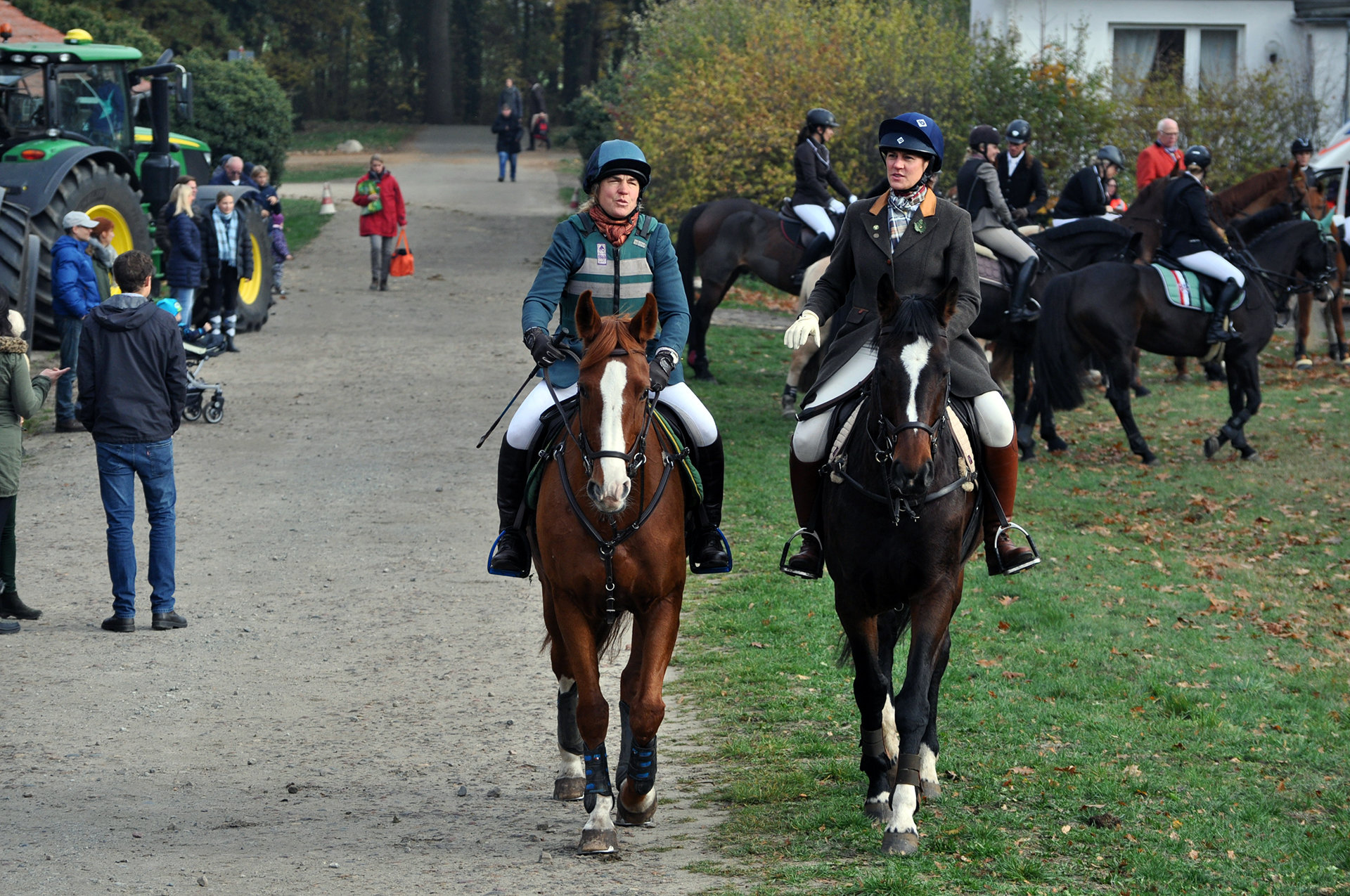 Eigentlich sollte ihr Sohn Philipp das erste Feld der springenden Abteilung führen. Doch sein Pferd lahmt, darf nicht geritten werden. Das ist reiterliches Selbstverständnis. Überhaupt ist Rücksichtnahme oberstes Gebot. Zwischen den einzelnen Schleppen warnt Mechthild von Lucke die Reiter vor dem nächsten Teilstück, eine Wiese mit tückischen Bodenwellen. Das Wohl der Tiere steht ganz oben. „Das ist das Wichtigste“, sagt sie, „dass alle Hunde, Pferde und Reiter heil und fröhlich ankommen.“