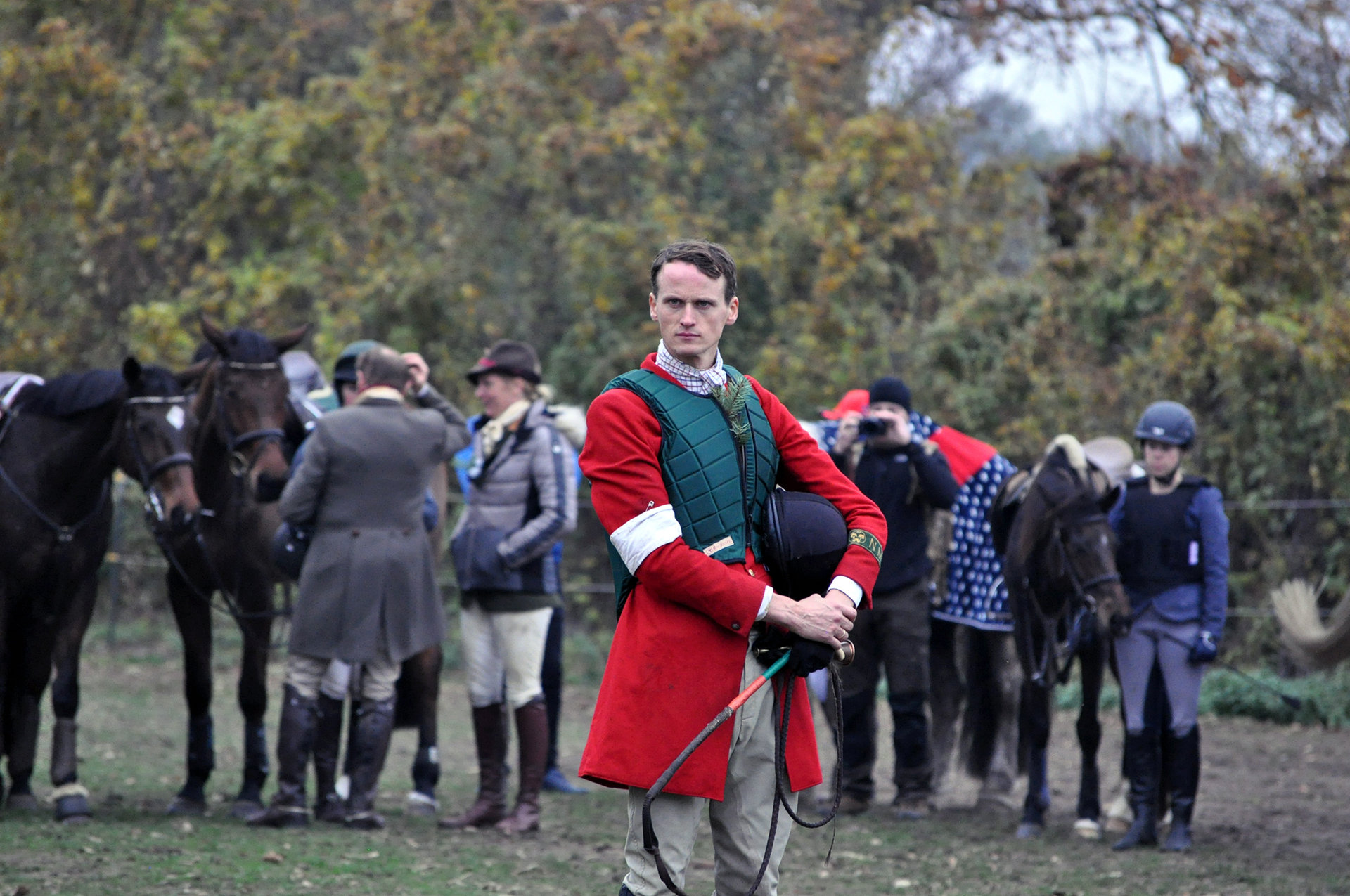 Max Sponagel weiß das nur allzu gut, er kennt seine Meute, kennt jeden Hund beim Namen. Aufgewachsen auf dem Reiterhof Sponagel in Oelerse, Kreis Peine, ist er mit Foxhounds groß geworden. Und natürlich mit Pferden. Er ist der Master, trägt einen roten Jagdrock mit weißer Armbinde, ein Reitfrack, darüber eine Schutzweste.